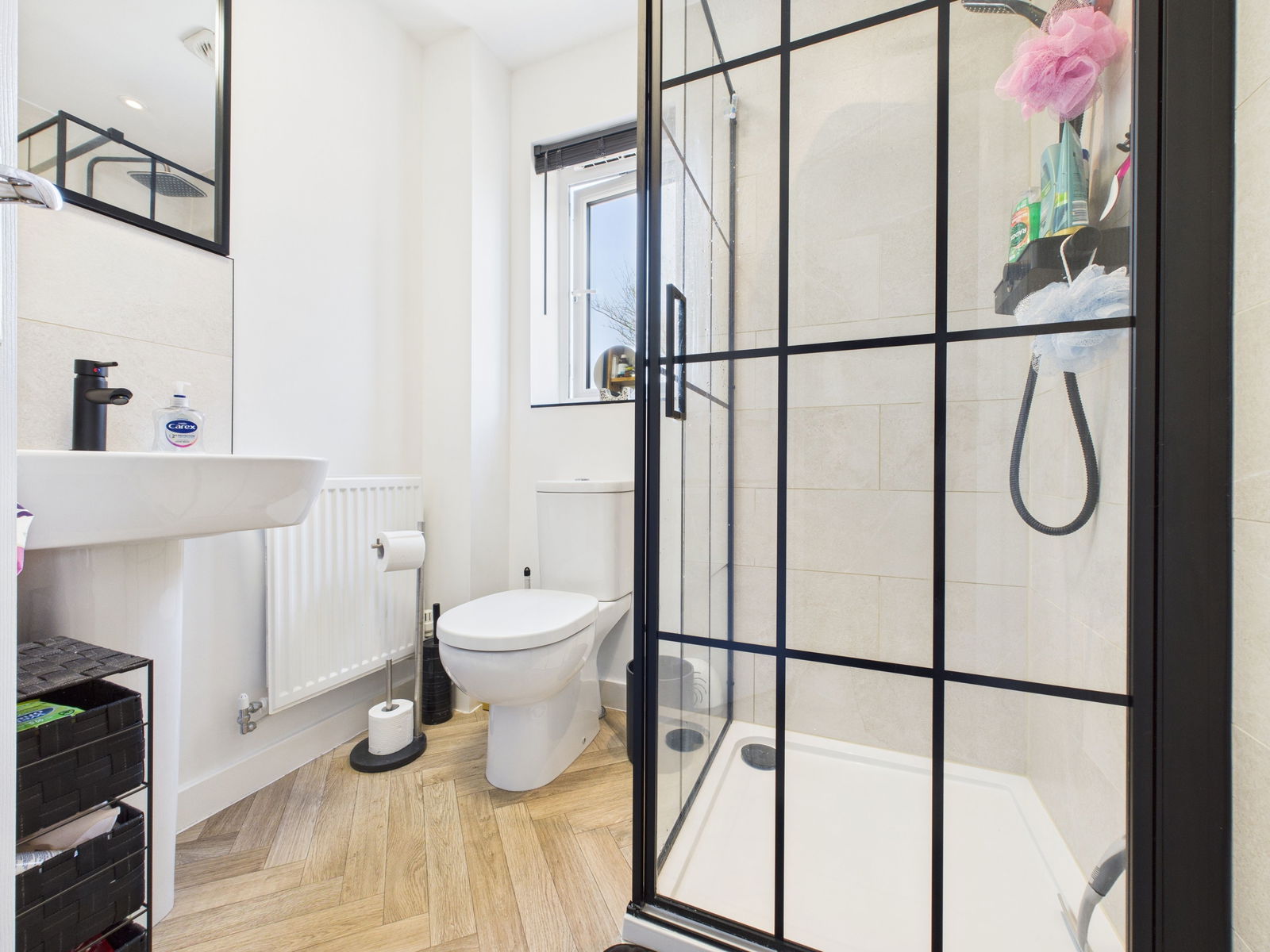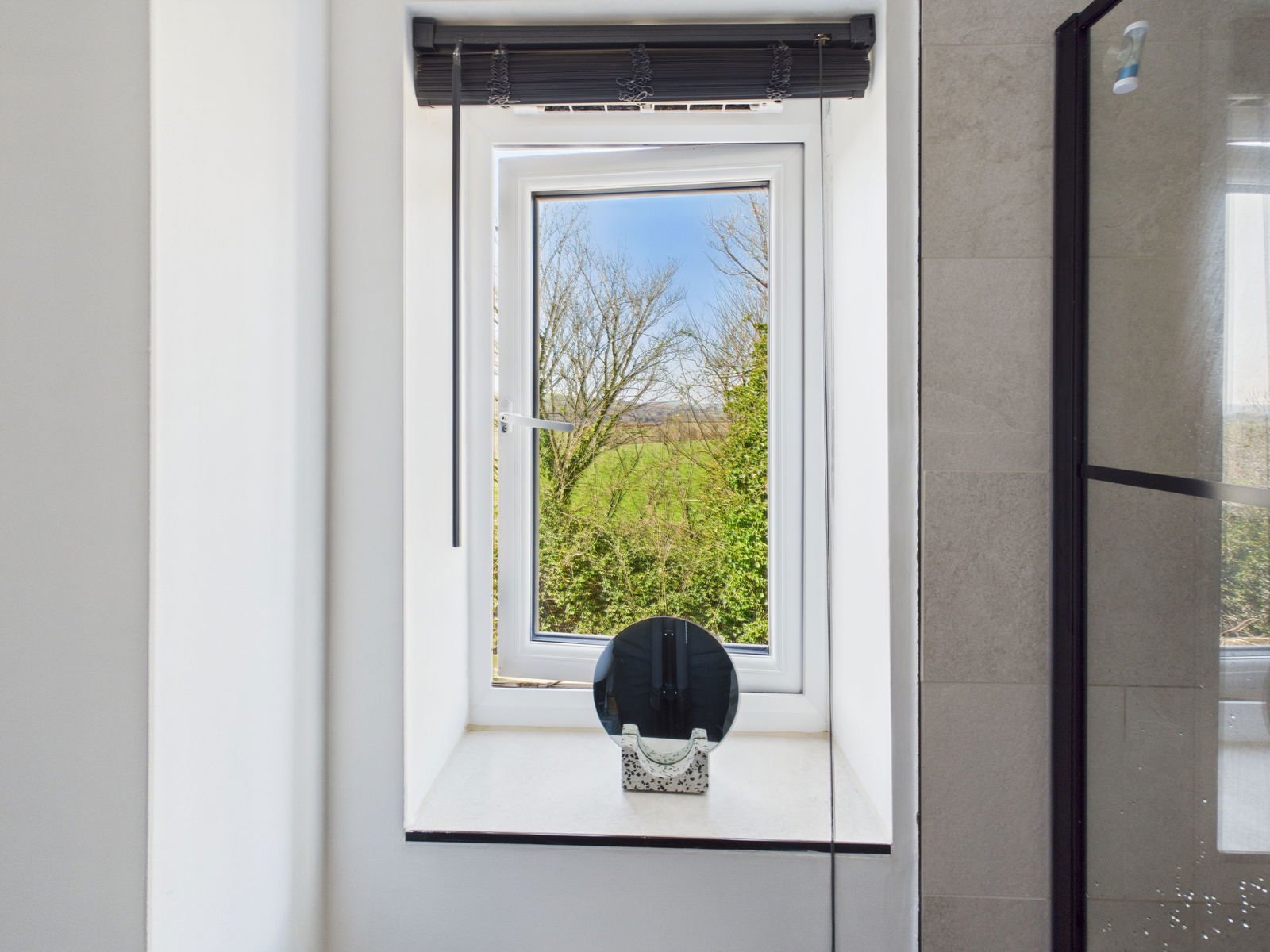 EN-SUITE A modern master en-suite boasting a low level flush WC, a pedestal wash hand basin and a walk in shower unit. Modern tiling to the walls, uPVC double glazed window with a picturesque view across the countryside and a gas central heated radiator.