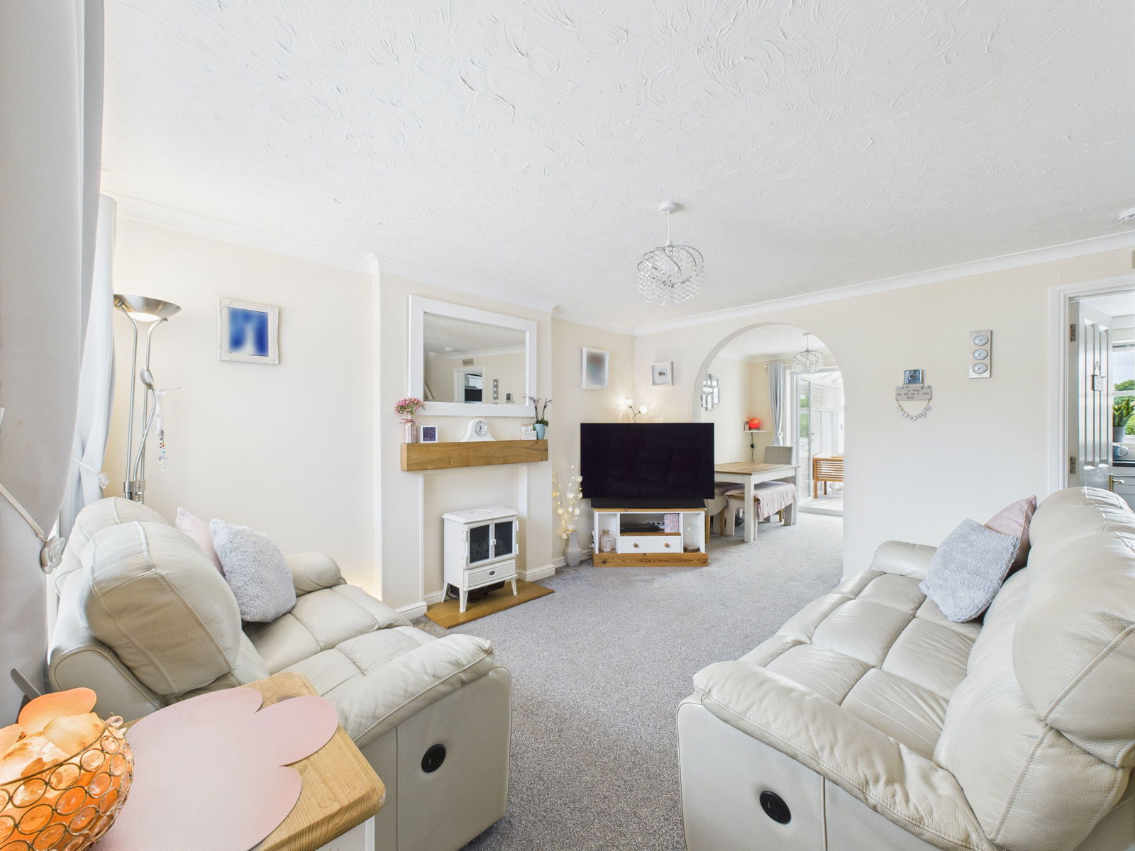 LIVING ROOM A bright and spacious living room offering a comfortable atmosphere with ample room for furniture. Features include space for an electric fire with a solid oak mantel above, double glazed window, TV and internet points, and a gas central radiator. An ideal setting for relaxing or entertaining guests, with seamless flow into the dining area.