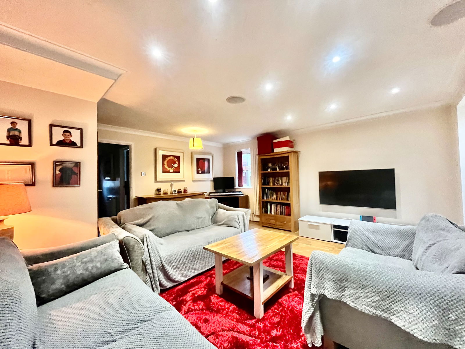 LOUNGE - 4.81m x 4.72m (15'9" x 15'5") A large living room with space for an abundance of furniture. Tv and internet points, oak flooring, overhead spotlighting, uPVC double glazed window and a vertical heated radiator.