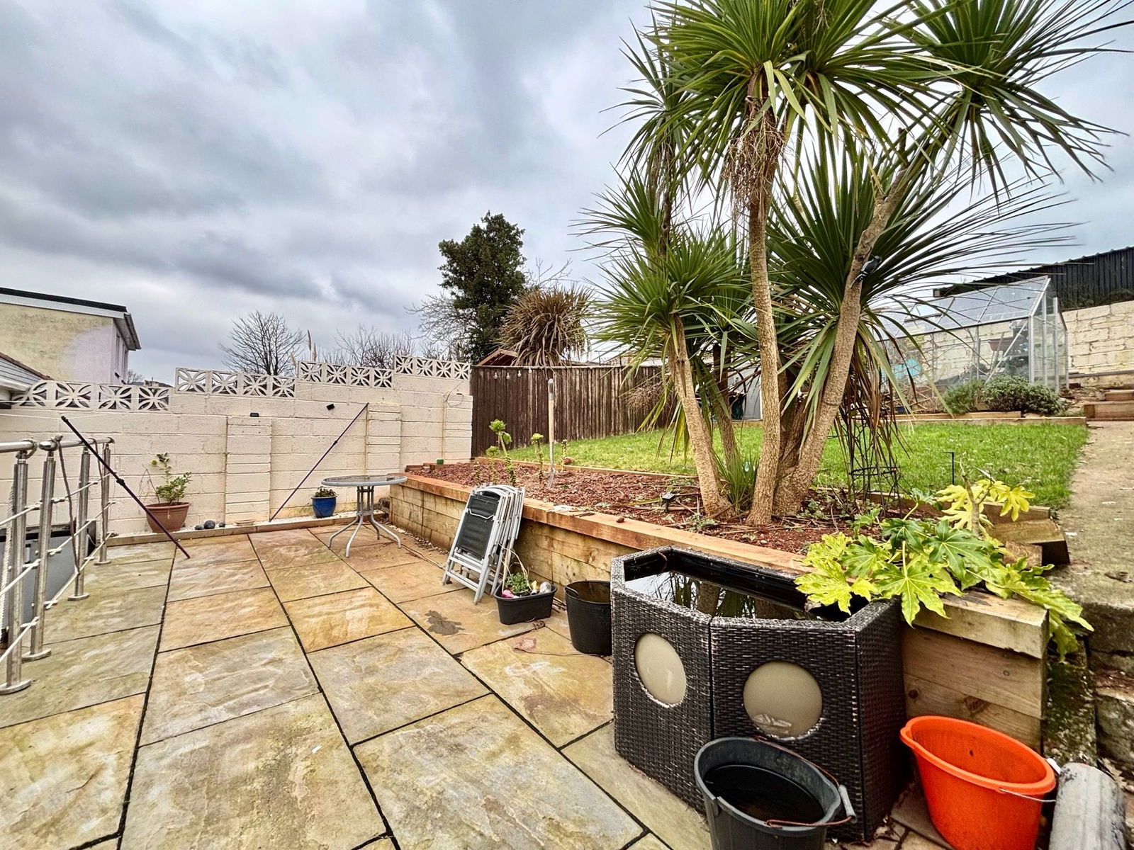 OUTSIDE A beautifully landscaped rear garden that has been thoughtfully designed for ease of maintenance with the first section being laid to patio perfect for outdoor dining and entertaining, with then a second section being laid to lawn and the third area having a newly built decking. Within the gardens are a variety of mature plants, shrubs and trees, a green house and water tap.