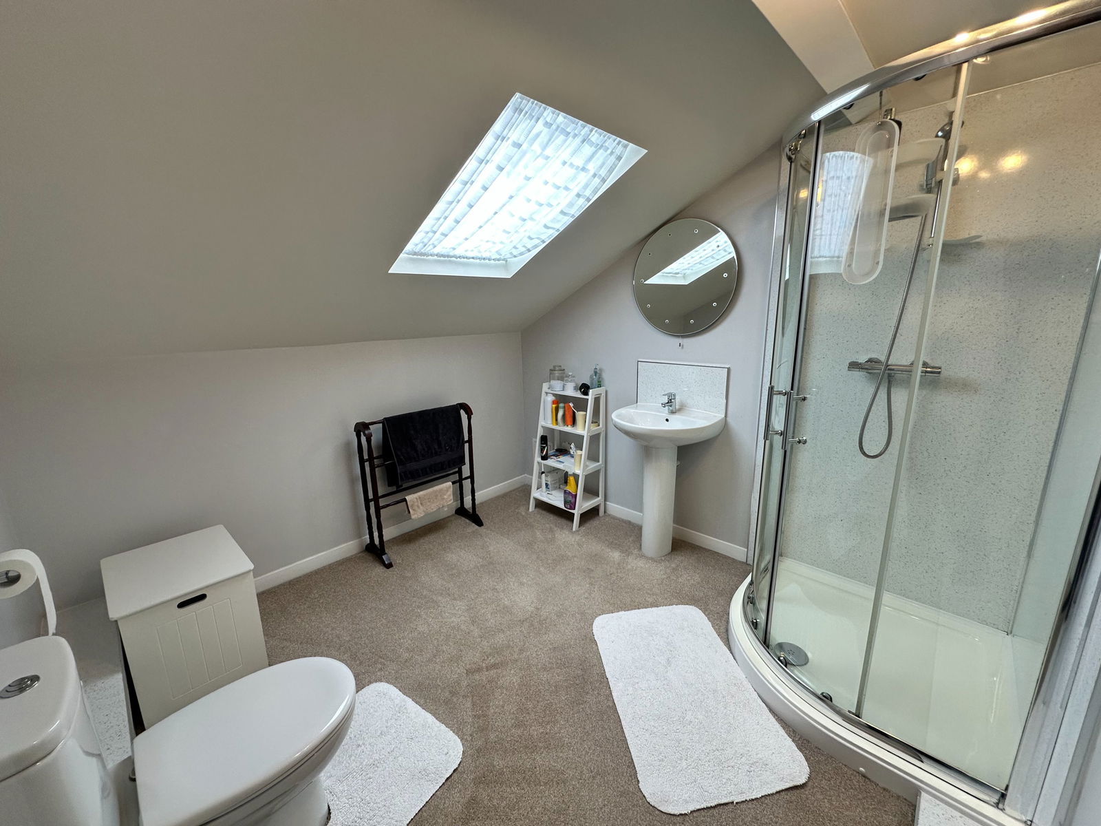 ENSUITE A beautifully appointed shower room with corner shower cubicle and mains fed shower unit. Pedestal wash hand basin and low level WC. Double glazed Velux window. Chrome ladder radiator.