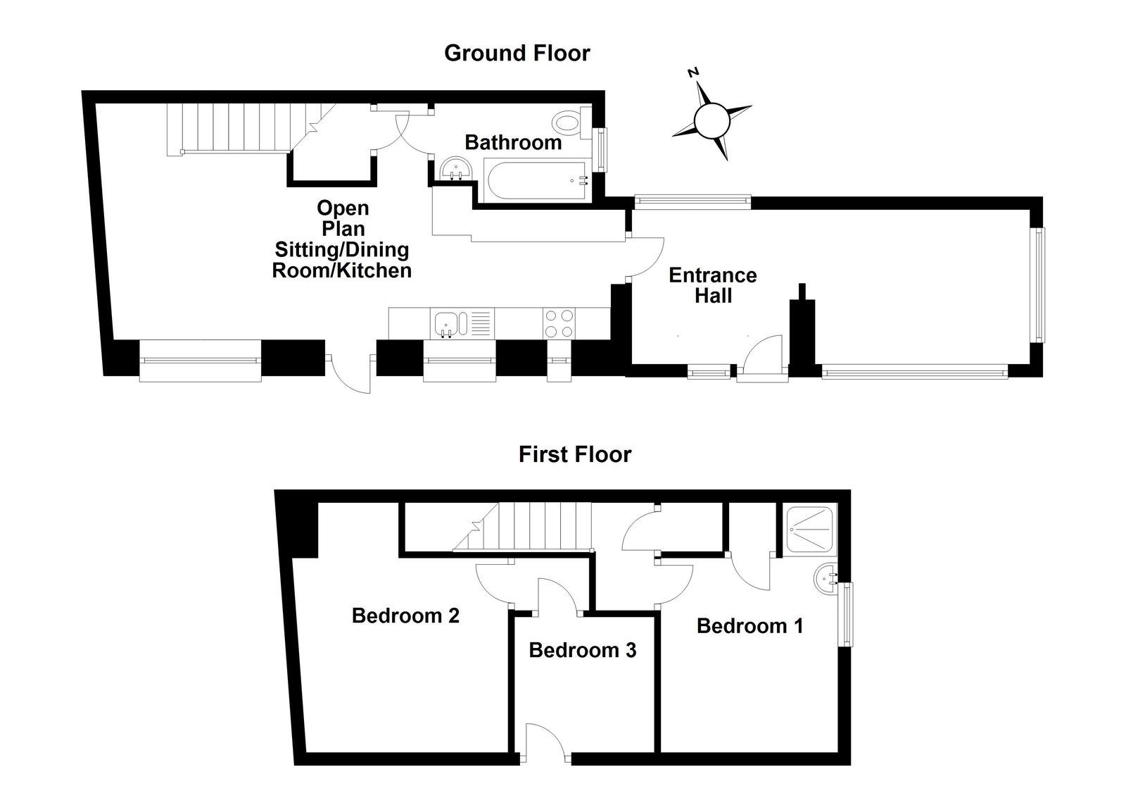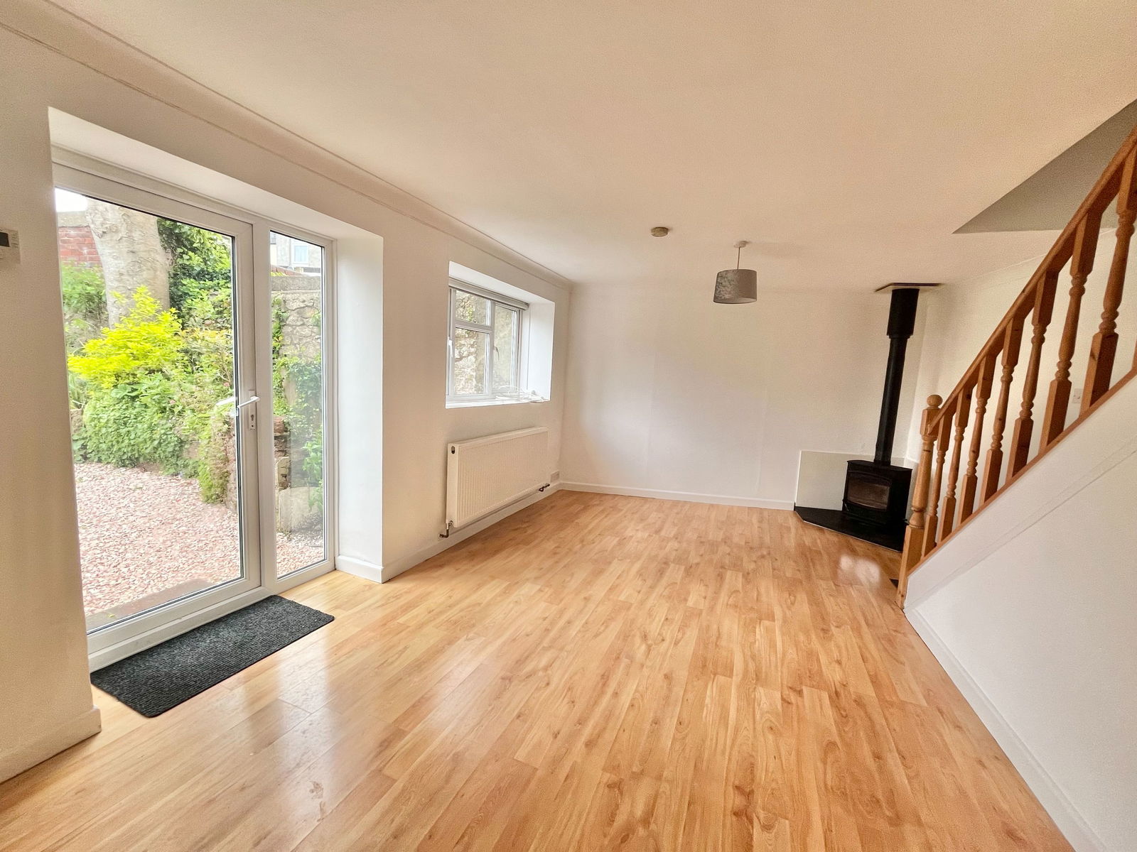 Lounge/Diner - 4.8m x 3.8m (15'8" x 12'5") Feature solid fuel stove on an open grate. Natural wood effect flooring. Central heating radiator. uPVC double window and patio door onto garden. Open plan staircase to first floor.
