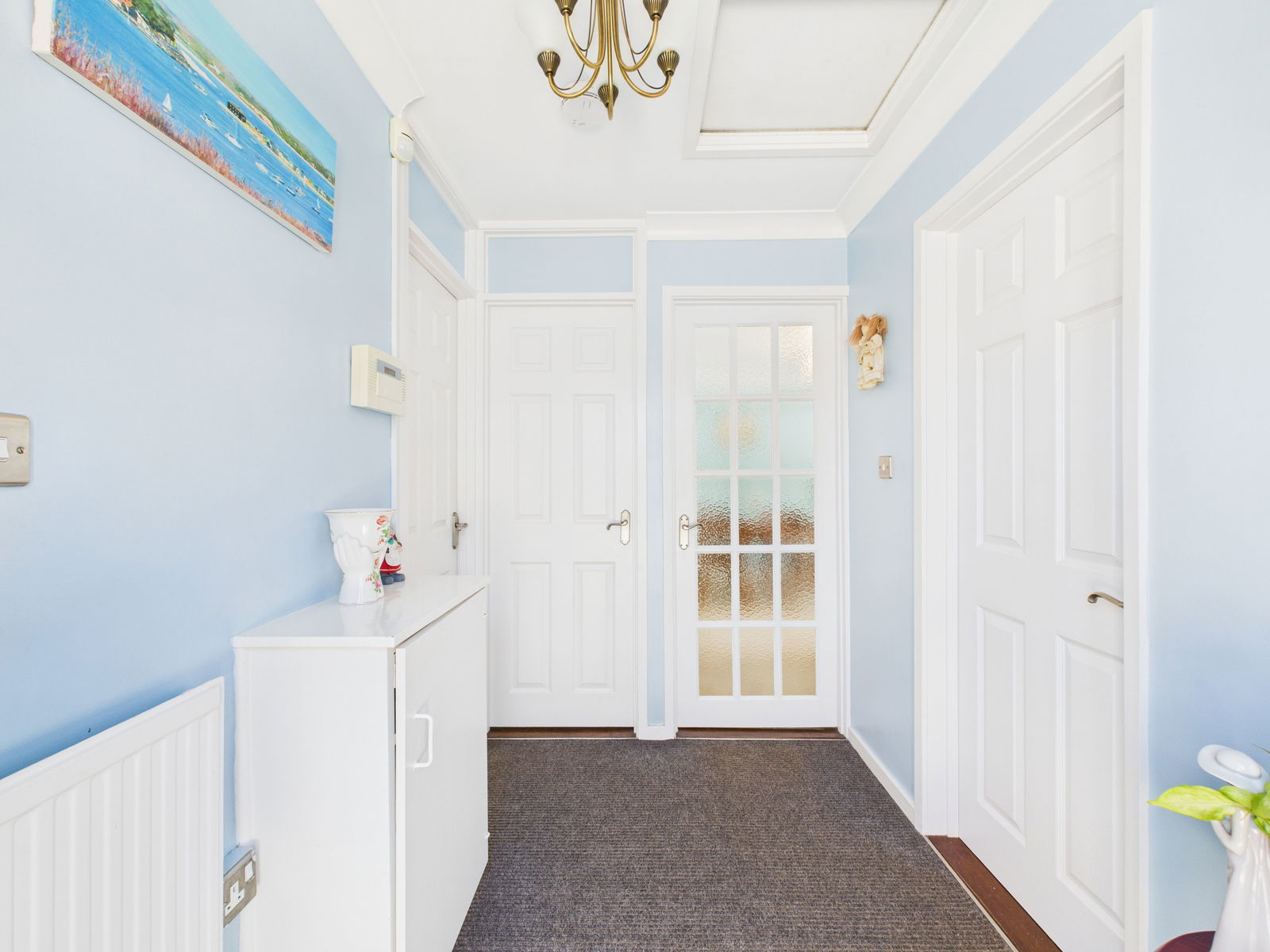 HALLWAY A uPVC double glazed front door opens into a spacious and inviting entrance hall. From here doors lead to all main rooms, with a convenient storage cupboard housing the fuse box, access to the loft and a gas central heated radiator.