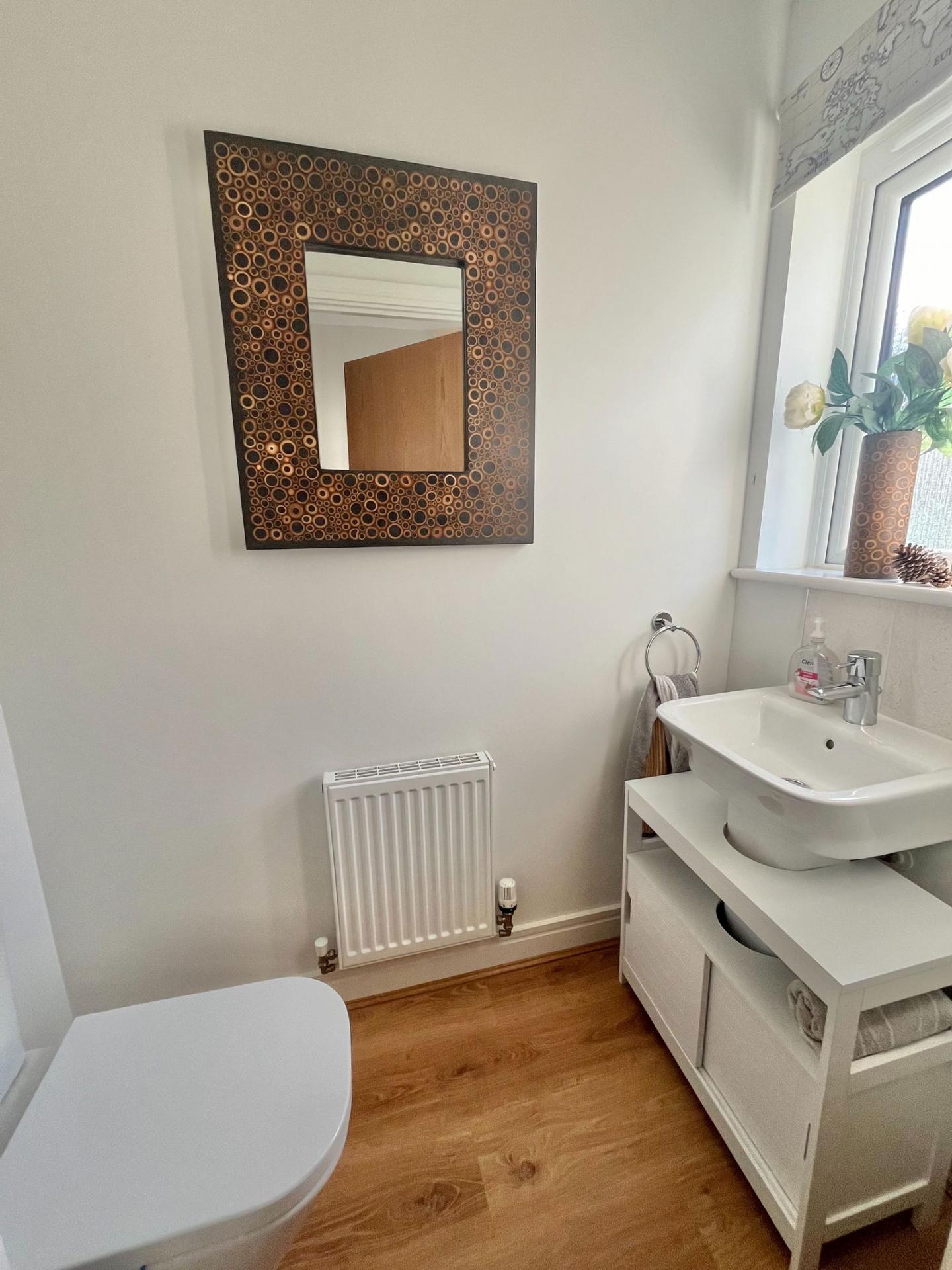 CLOAKROOM Low level WC. Wash hand basin. Gas central heating radiator. uPVC double glazing.