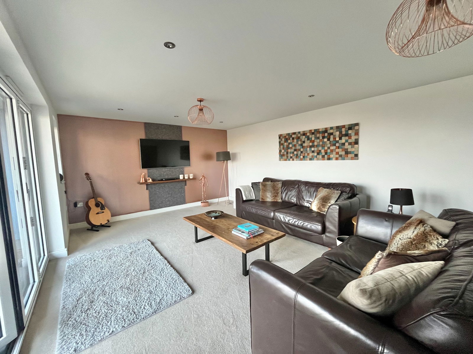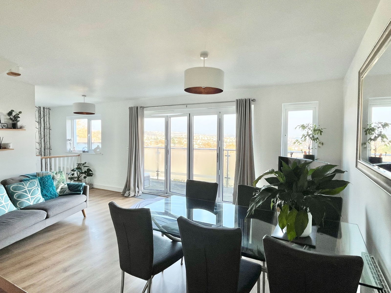 FAMILY LOUNGE/DINER - 8.63m x 4.75m (28'3" x 15'7") A large open plan space adjoining the kitchen. Space for a variety of furniture. A deep understairs storage cupboard. Exceptional sea views across the entire bay. Bifolding doors leading onto a large balcony overlooking the bay. uPVC double glazed windows. Two central heating radiators. TV point.