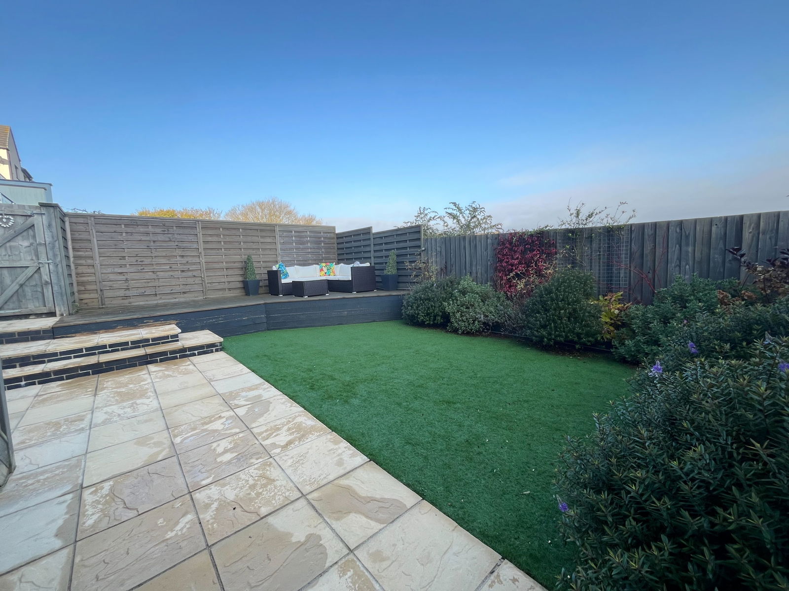 OUTSIDE Astro turfed front garden. Driveway parking for two vehicles. Side gate with access to rear garden.