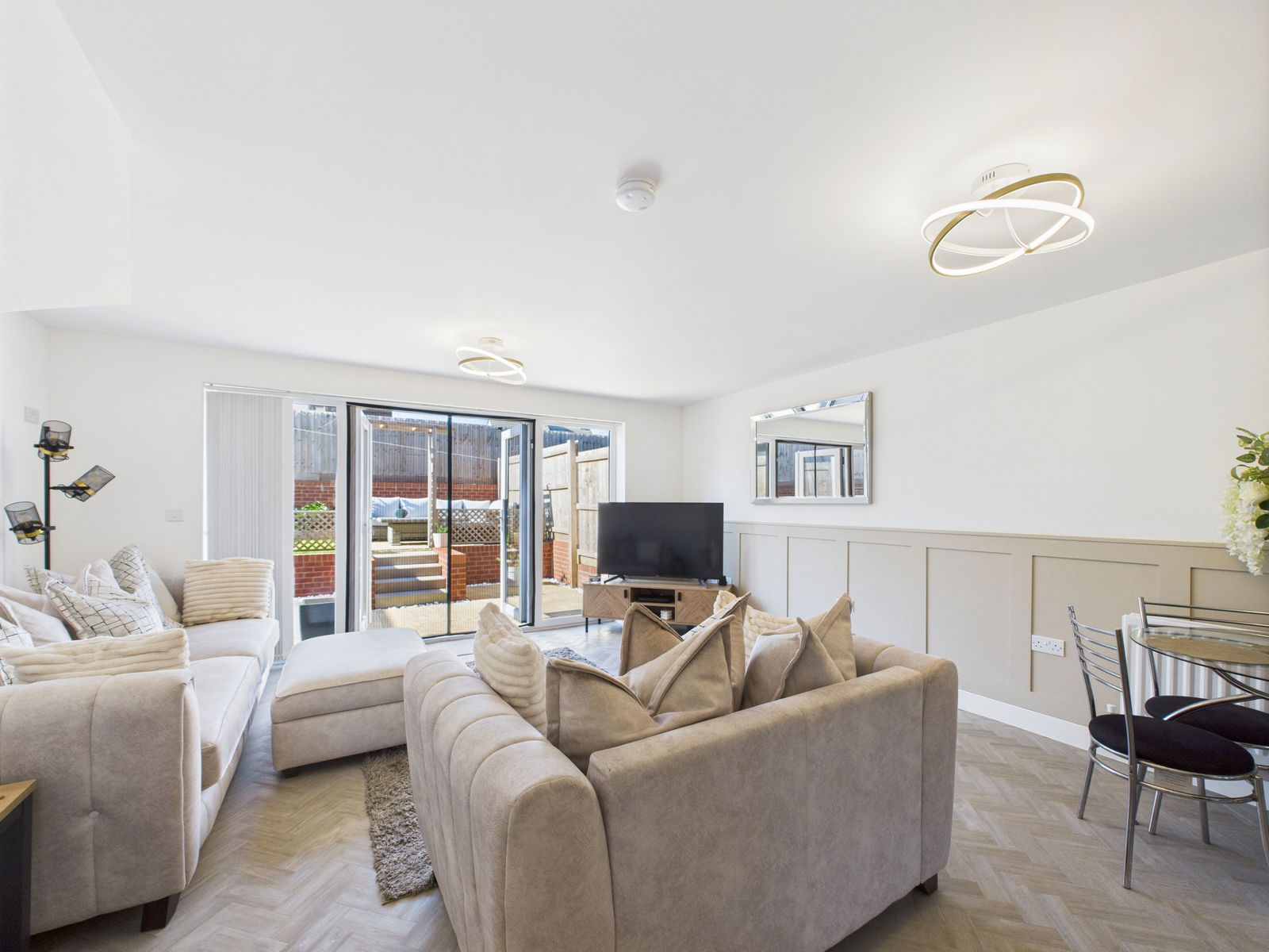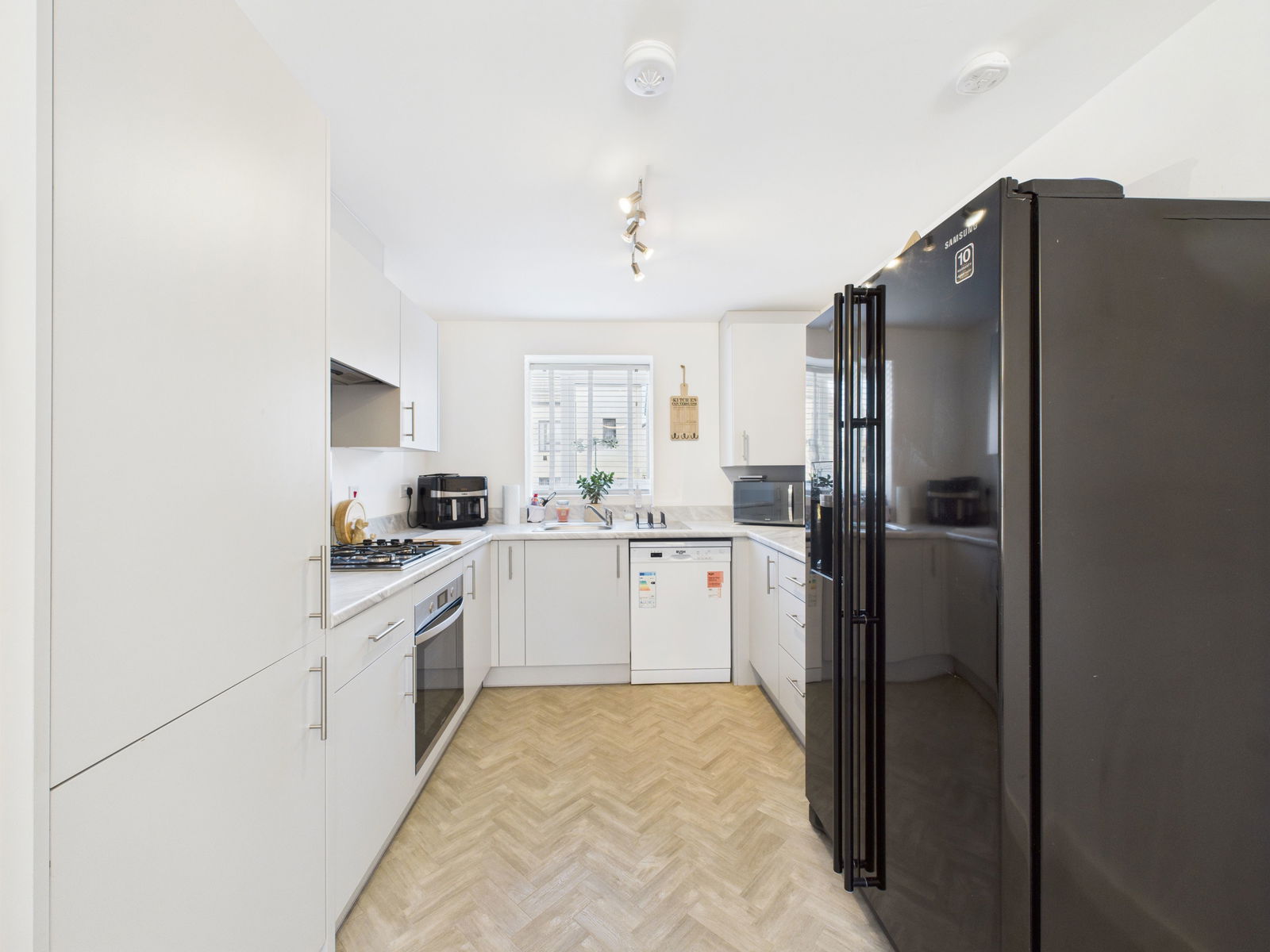 KITCHEN/DINER/LIVING ROOM - 8.64m x 4.86m (28ft 3" x 15ft 9") A large open plan living space that caters perfectly to modern day living and entertaining. The kitchen boasts a range of overhead, base and drawer units with roll edged work surface above. A 1 bowl stainless steel sink and drainer unit, an electric single oven with grill integrated and a four ring gas hob with extractor above. Within the kitchen is also a large fitted larder cupboard, space and plumbing for a dishwasher and American fridge freezer and a uPVC double glazed bay window. The lounge/dining area offers space for ample furniture, a handy under stairs storage cupboard, tv point, uPVC double glazed French doors leading seamlessly into the gardens, further floor to ceiling double glazed windows to the side allowing an abundance of light to flood through and two gas central heated radiators.