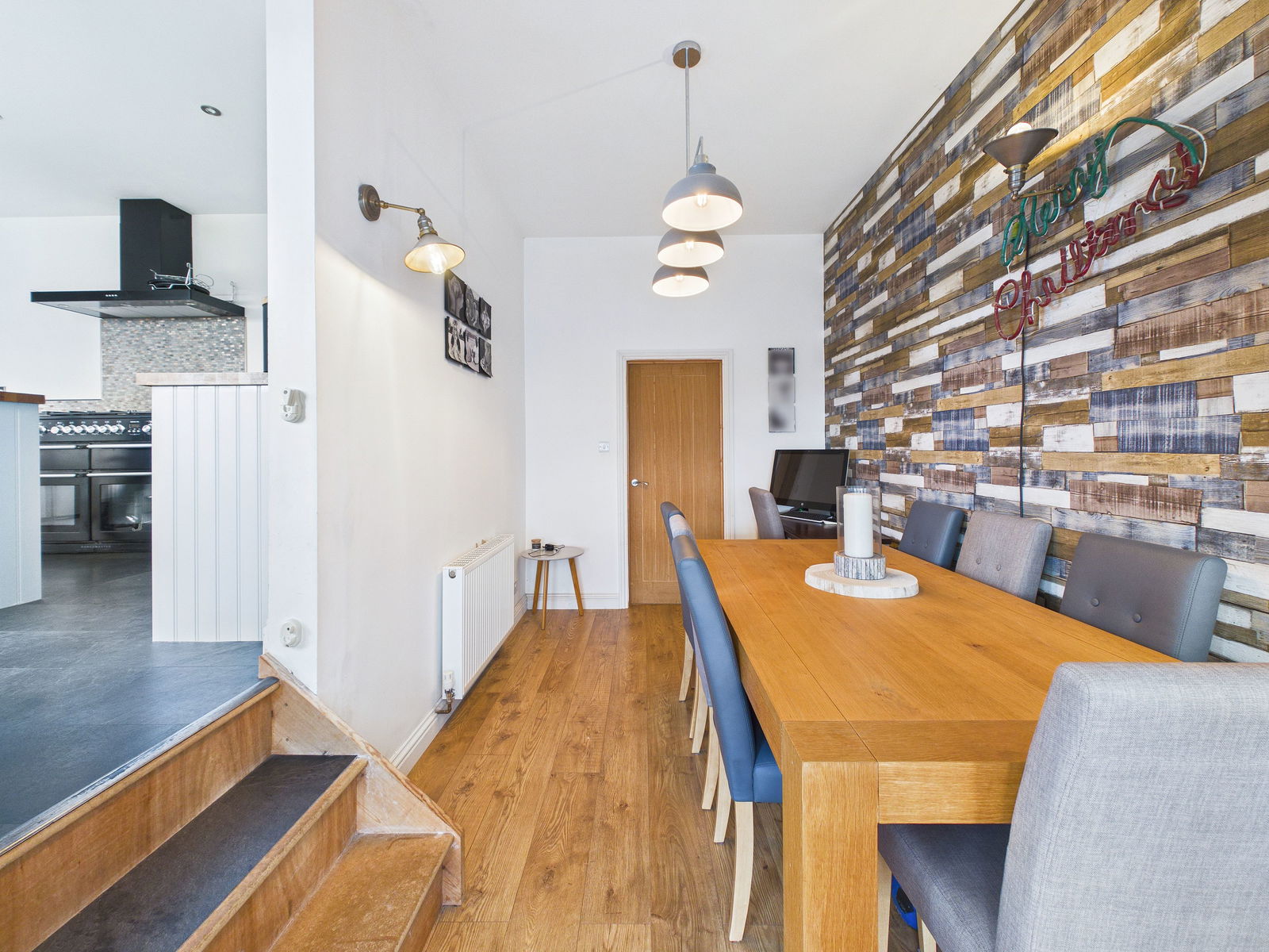 DINING ROOM Open to the kitchen, the generous dining room offers an ideal setting for family meals and social gatherings. uPVC double glazed doors open seamlessly into the conservatory.