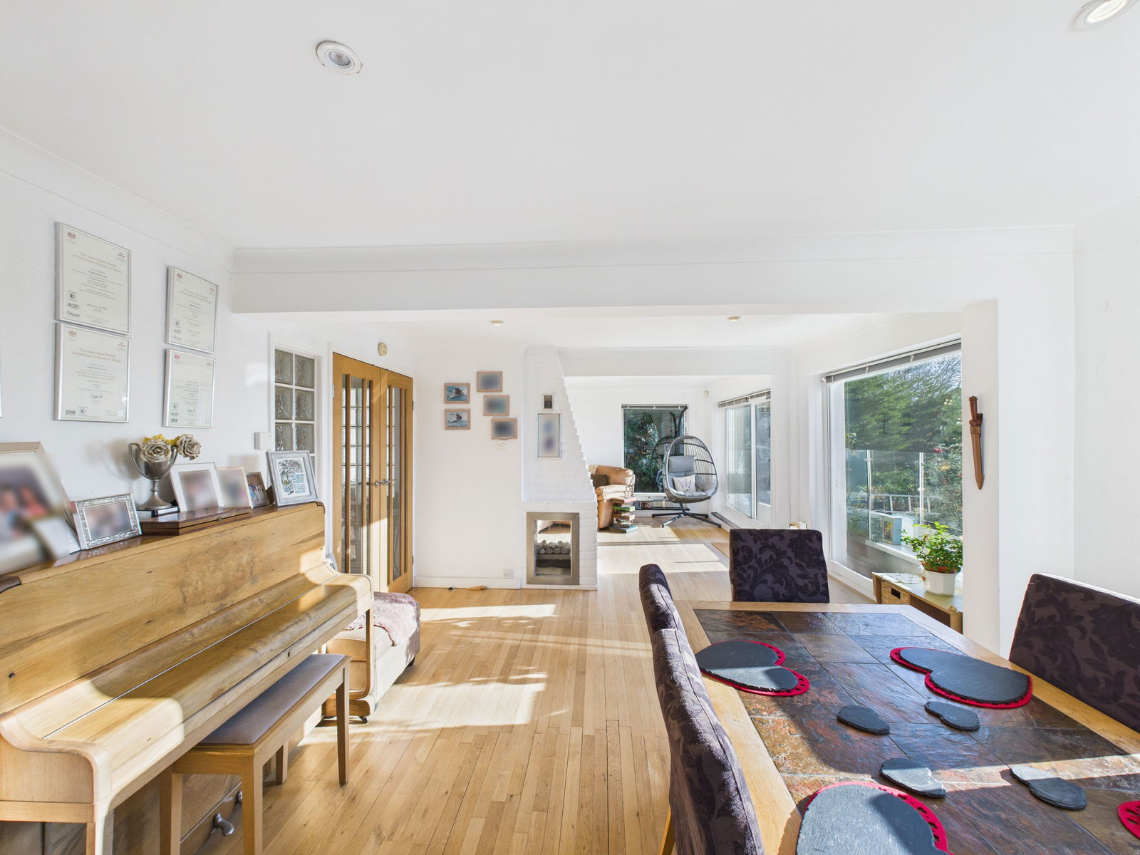 OPEN-PLAN LOUNGE/DINING ROOM Bright and spacious room with large windows to the side and rear, enjoying a sunny aspect throughout the day. Sliding patio doors open onto the balcony.