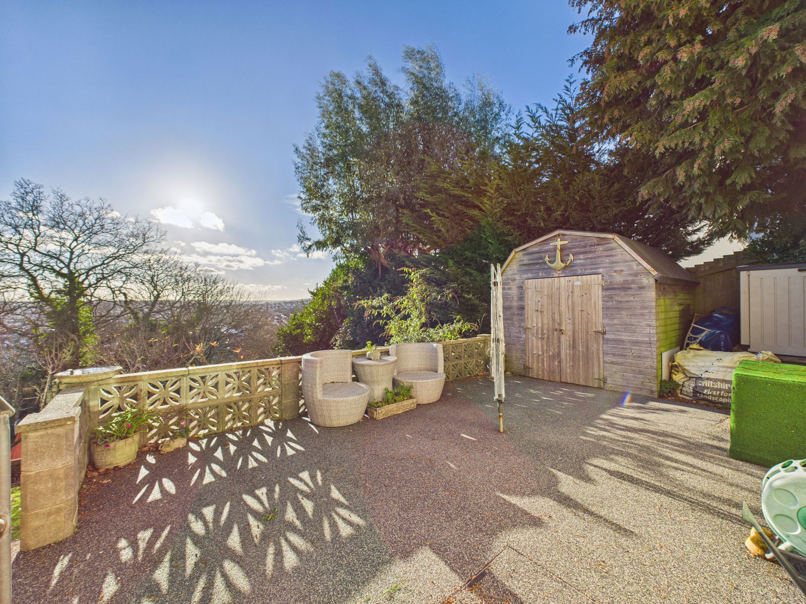 GARDEN The property enjoys a private rear garden backing directly onto Occombe Woods, offering a peaceful and secluded setting. The garden is mainly laid to lawn with mature trees and planting providing a natural backdrop, while the balcony and patio areas offer ideal spaces for outdoor seating and entertaining.