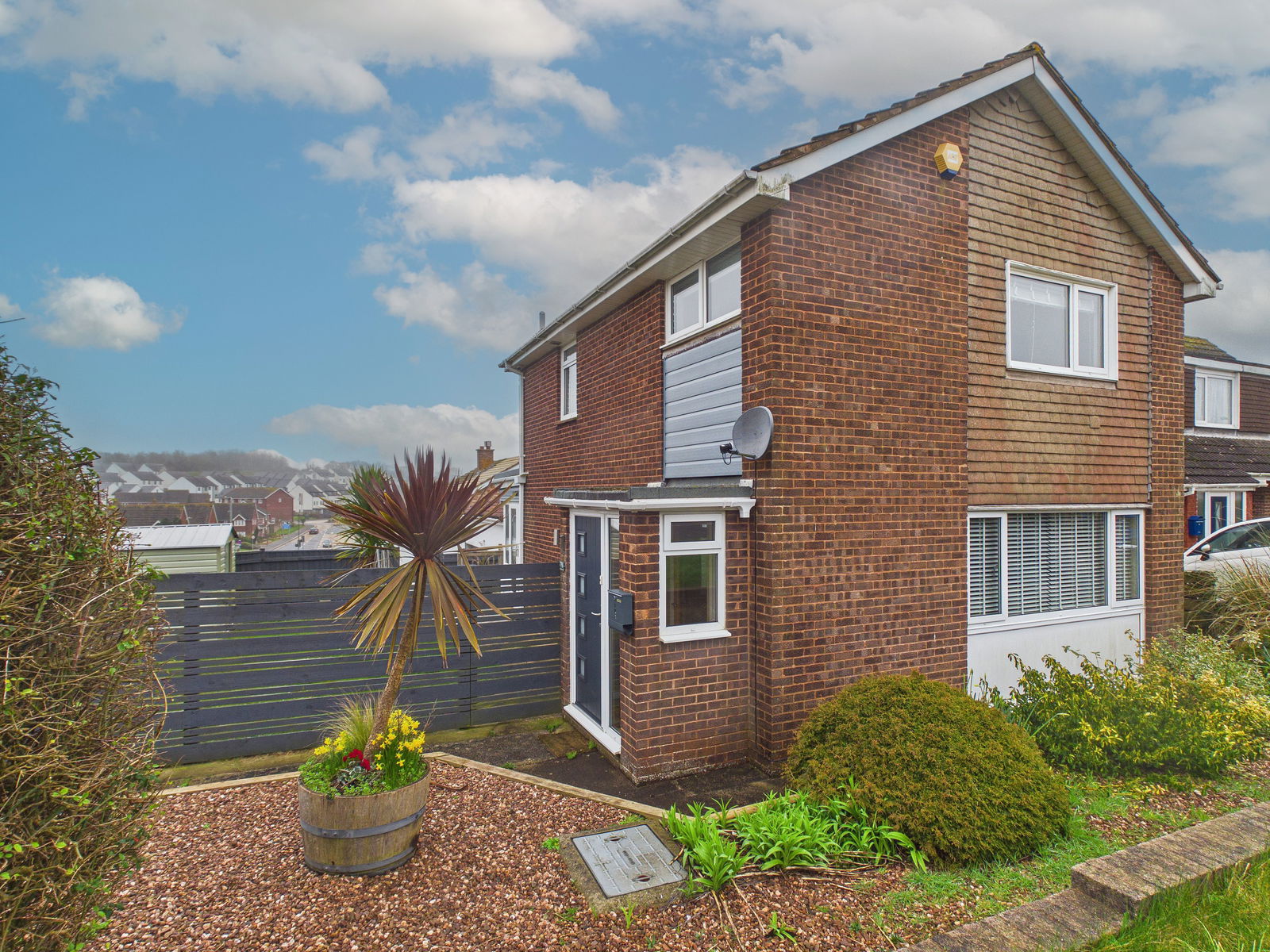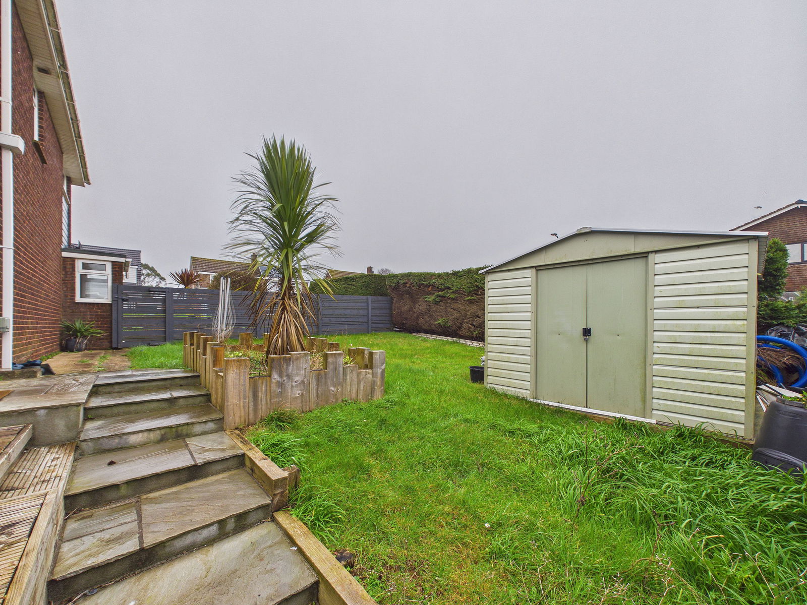 REAR GARDENS Thoughtfully landscaped gardens extend across two aspects of the property, enjoying both south-easterly and south-westerly orientations for excellent sun exposure throughout the day. The outdoor space includes a generous decking area ideal for alfresco dining, a paved patio, and a lawned area. There is also a large shed and a side gate providing access to the parking area and garage.