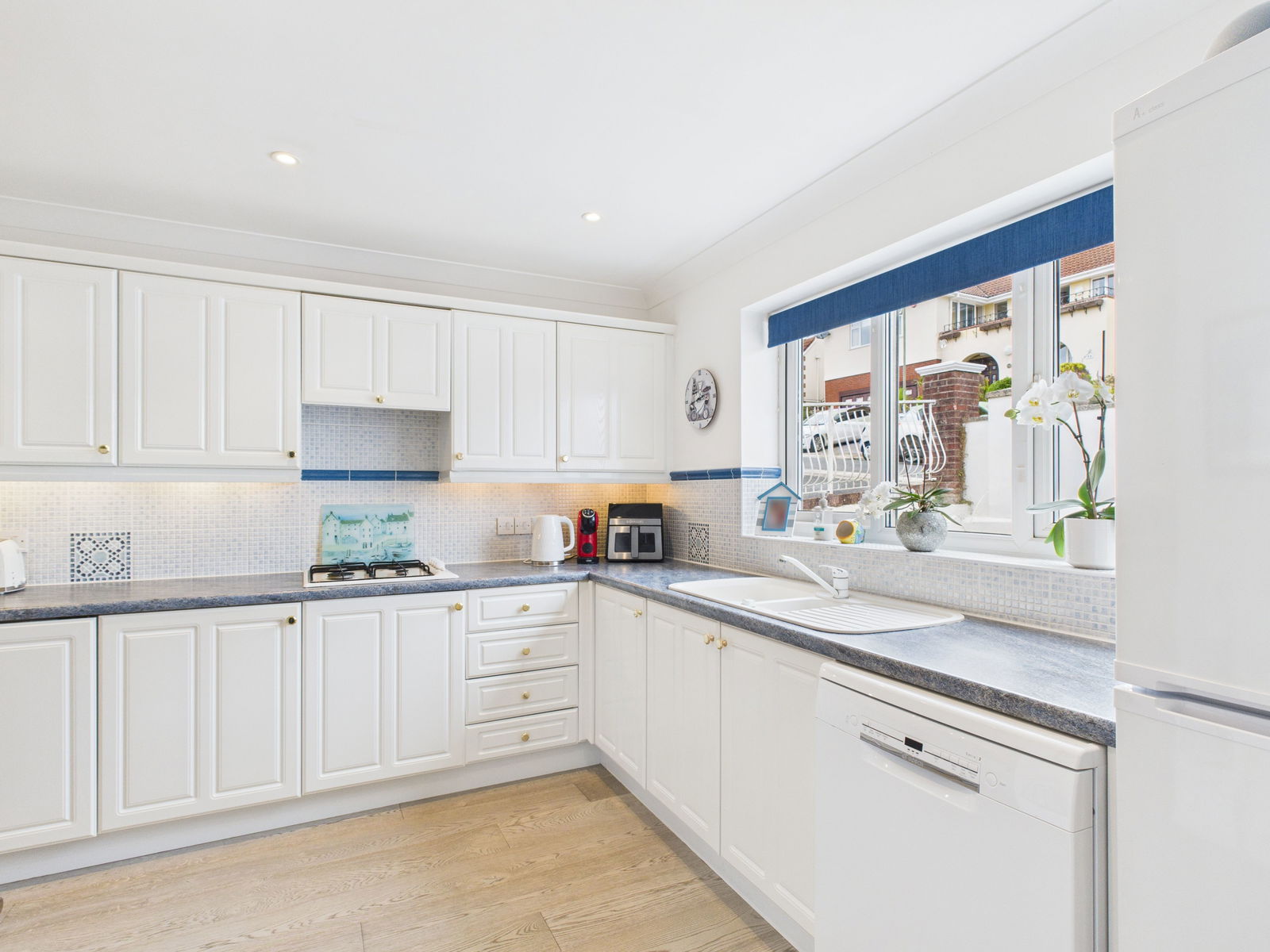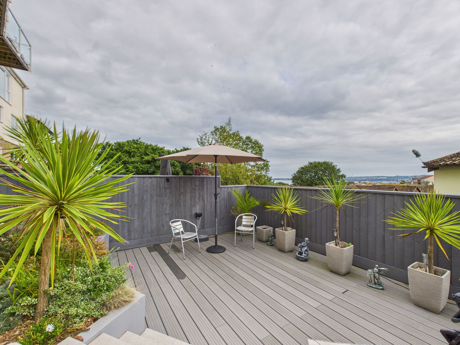 REAR GARDEN Patio area onto further decked garden area nicely enclosed and yet retaining sea views. Side access. Water tap in garage and outside ground floor.
