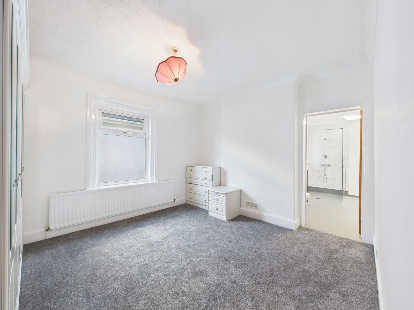 BEDROOM ONE A spacious master bedroom complete with built in wardrobes and drawer units. This room also includes a uPVC double glazed window, gas central heating radiator and direct access to the Jack and Jill bathroom.