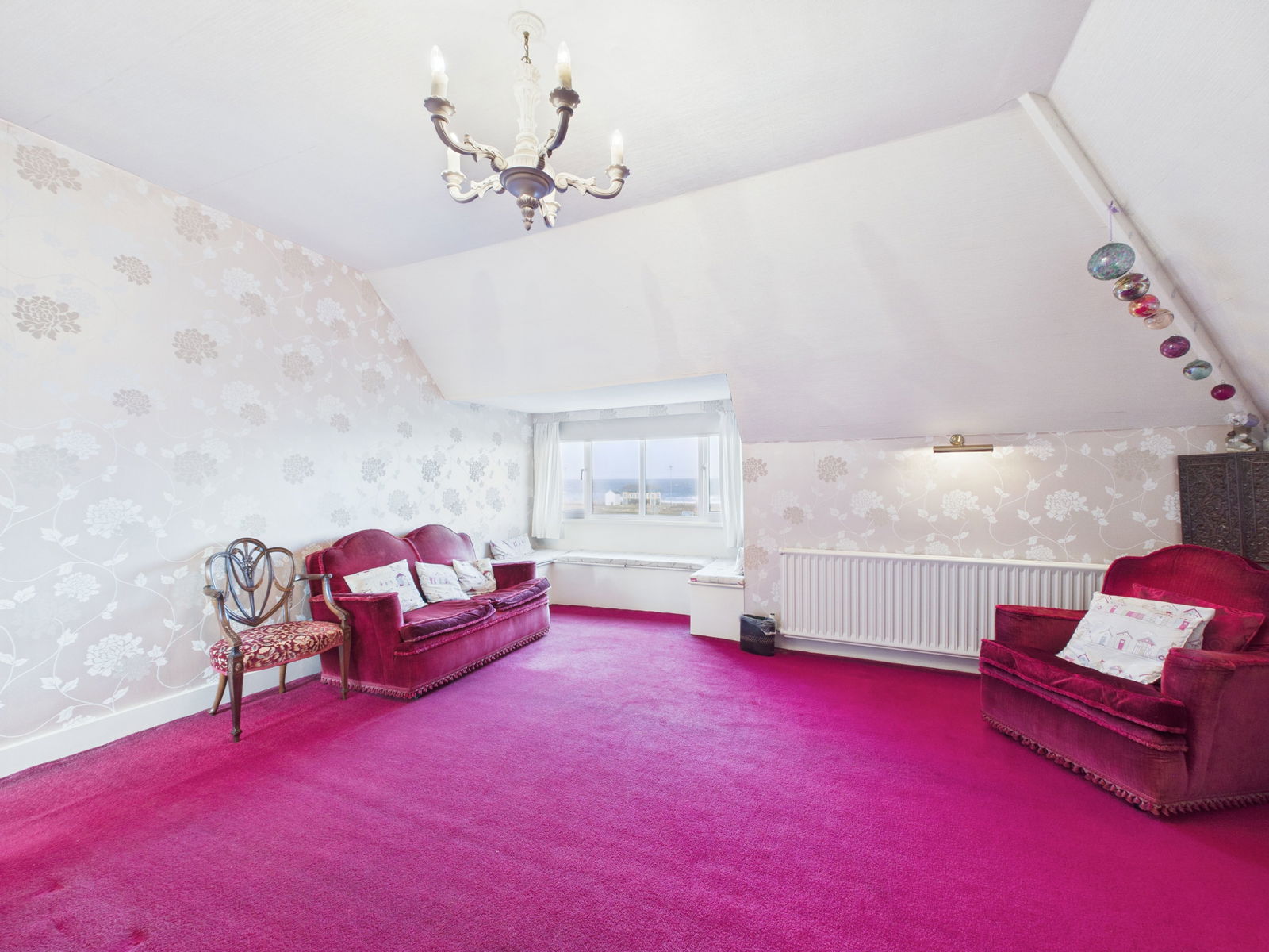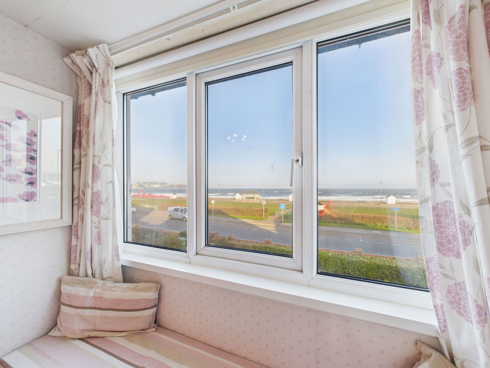 BEDROOM ONE A spectacularly large master bedroom to the front aspect with breathtaking sea views across the entire bay, built in bay seating area perfect for taking in the incredible outlook, uPVC double glazed window and a gas central heated radiator.