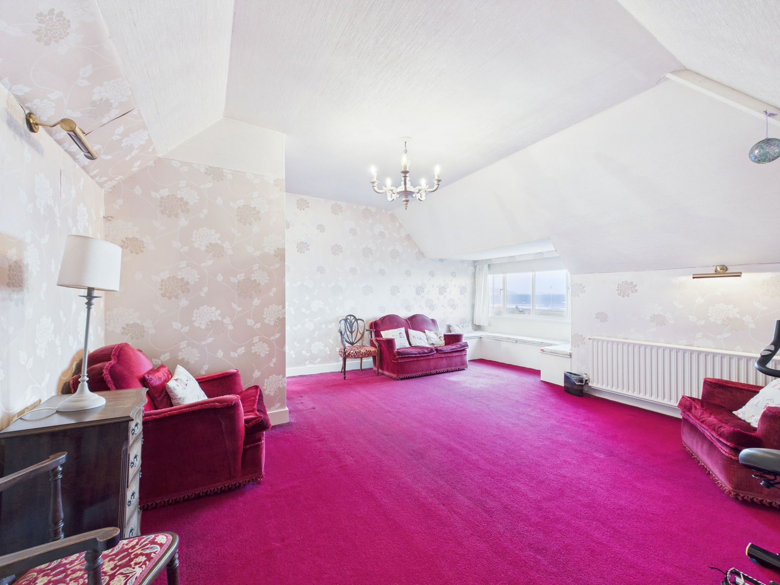 SITTING ROOM A spacious further sitting room again to the front aspect of the property with phenomenal sea views, an open fireplace, uPVC double glazed floor to ceiling windows and a gas central heated radiator.