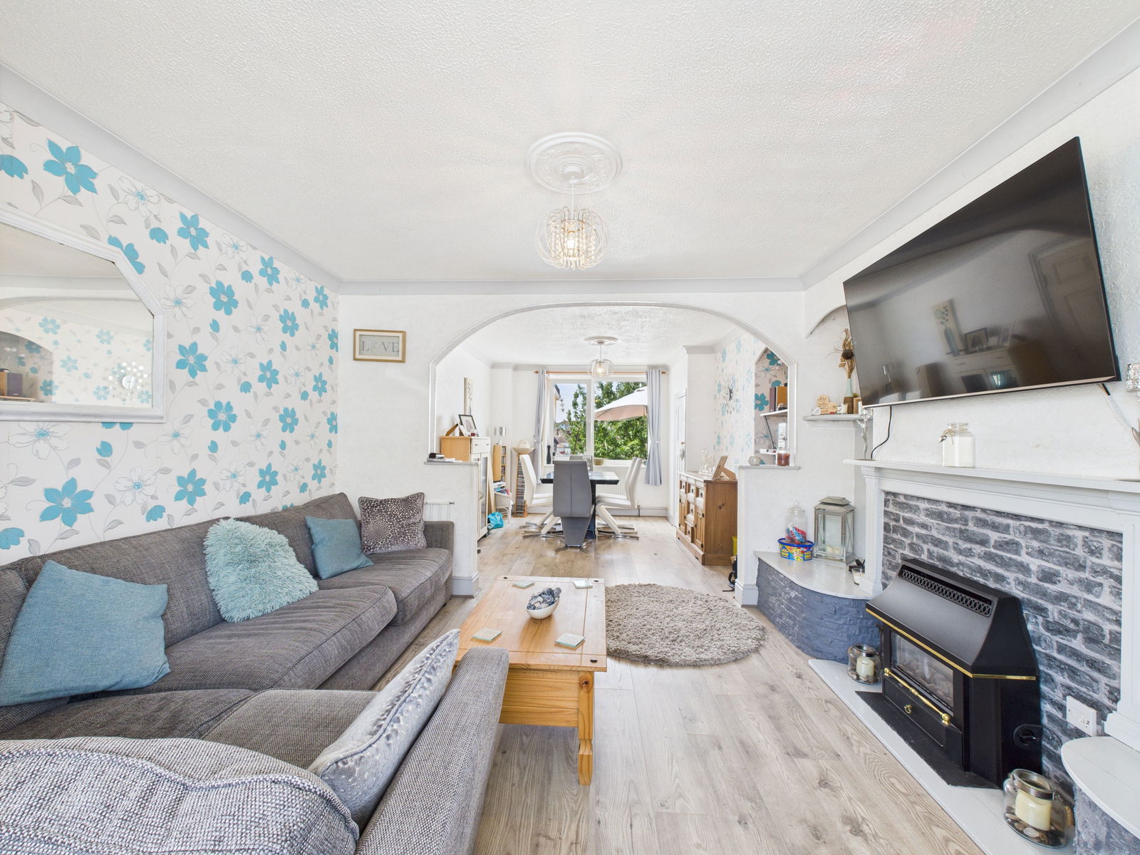 LOUNGE/DINER - 3.16m x 3.85m (10'4" x 12'7") An exceptionally large open living room/diner perfect for entertaining and space for an abundance of furniture. A feature gas fireplace, a storage cupboard within the dining area housing the combination boiler, coving, double aspect uPVC double glazed windows to the front aspect and the rear overlooking the sunny gardens. Two gas central heated radiators.