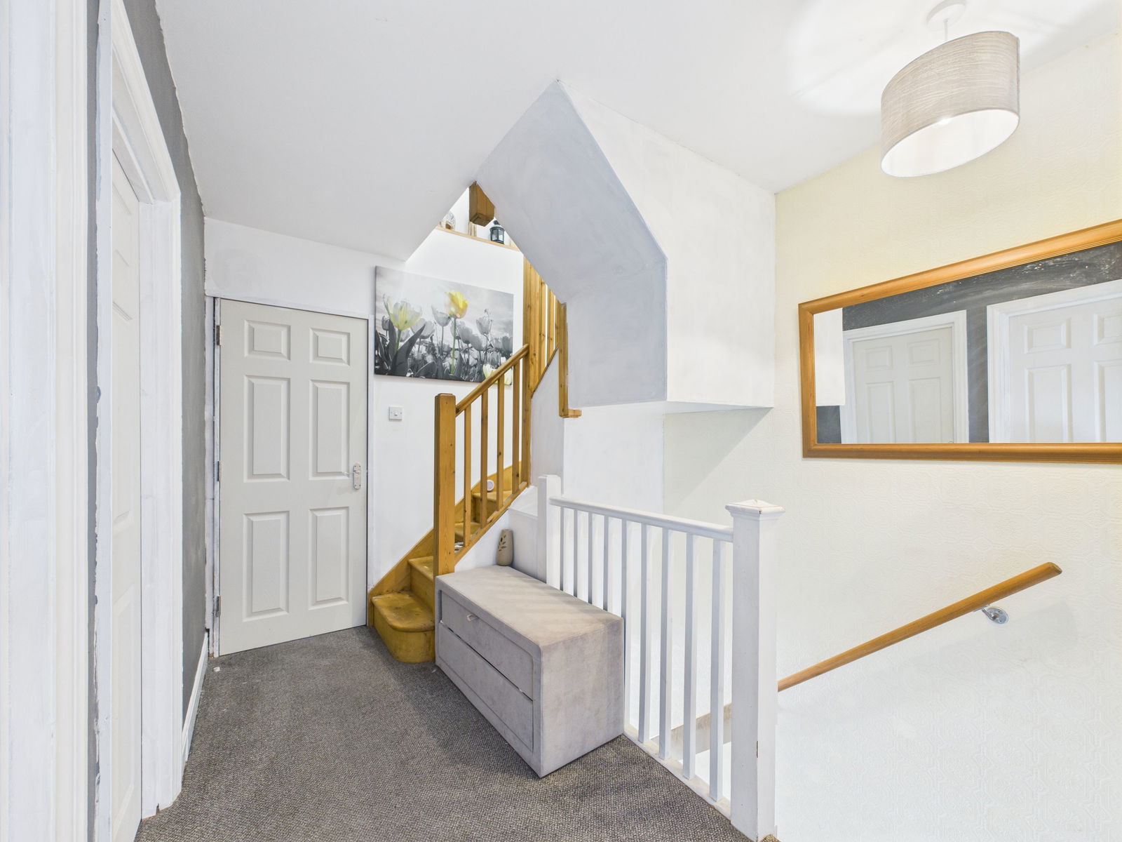 ENTRANCE A uPVC double glazed front door opening into a wide and welcoming entrance hallway with doors leading to the adjoining rooms, stairs rising to the first floor, deep under stairs storage cupboard and a gas central heated radiator.