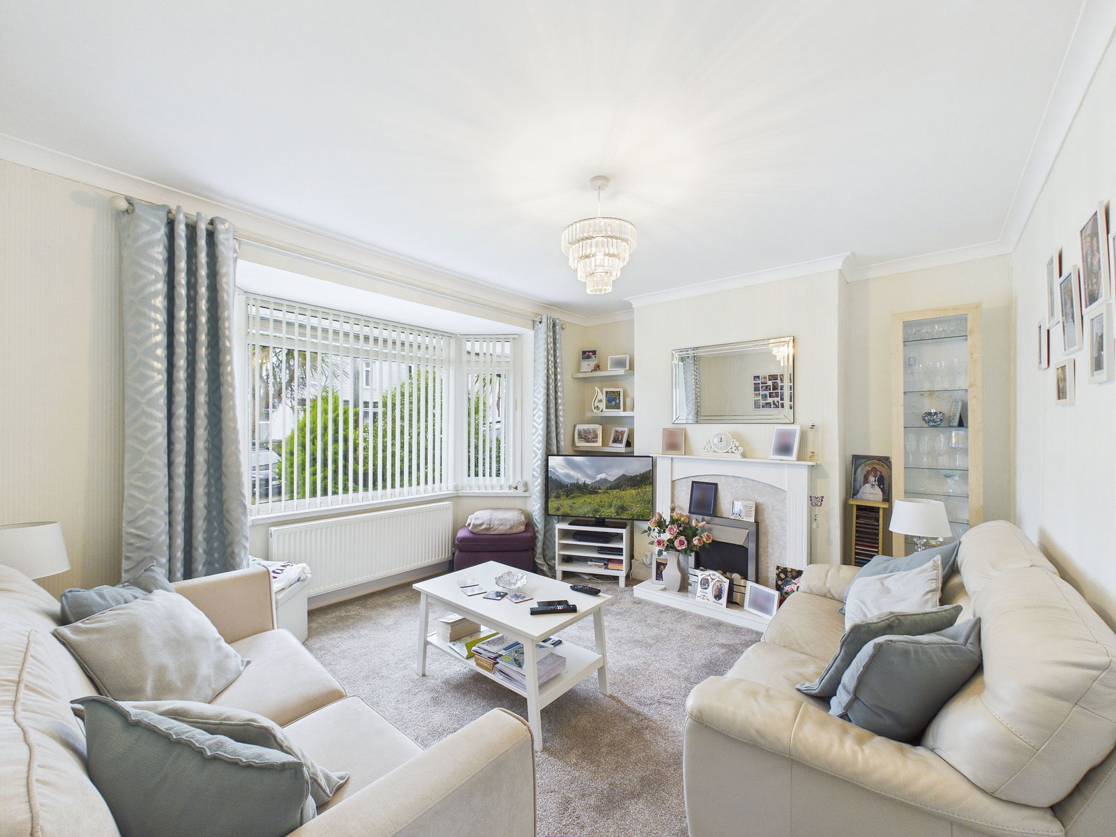 LOUNGE Feature fireplace with fire. Central heating radiator and uPVC double glazing.