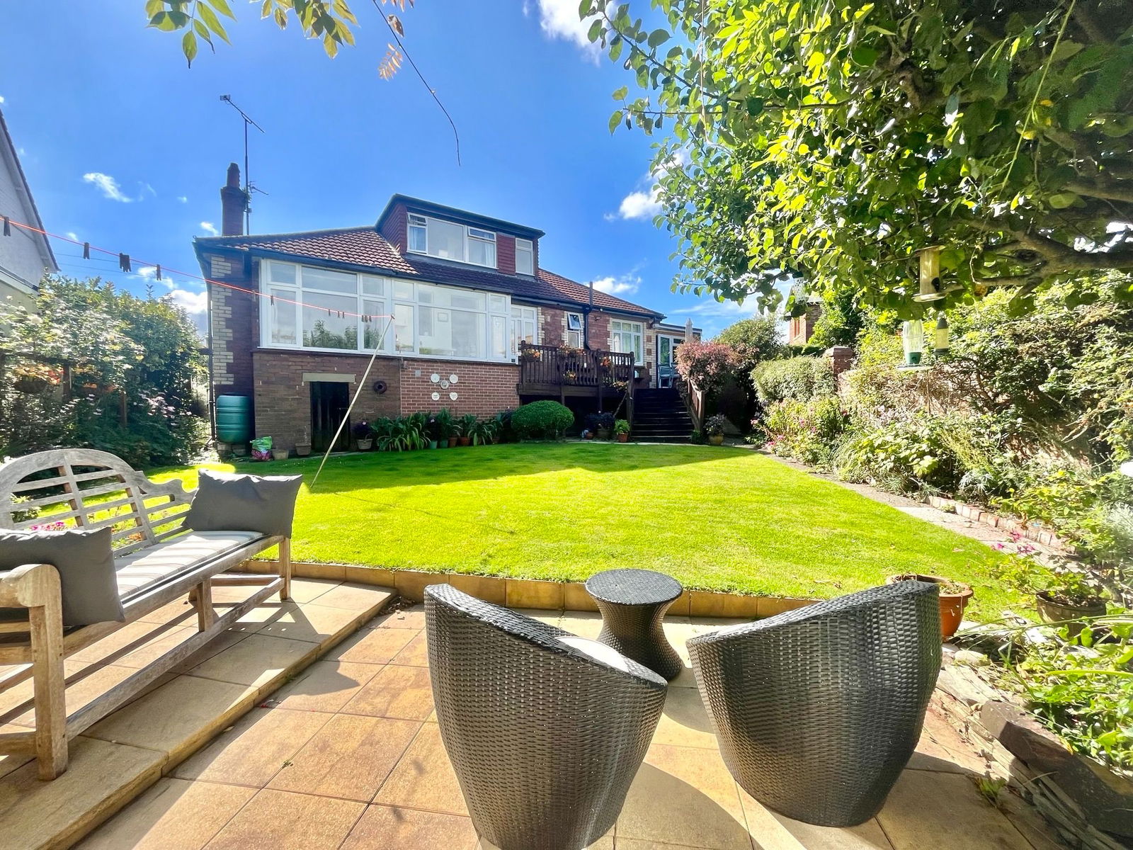 GARDEN A beautifully landscaped rear garden that boasts a sizeable sun deck ideal for alfresco dining, a large lawned area with a variety of mature shrubs and plants surround, a patio area that accesses the garden room and its own secret allotment. Within the gardens you can access under house storage, side gates that lead to the front of the property and water tap.