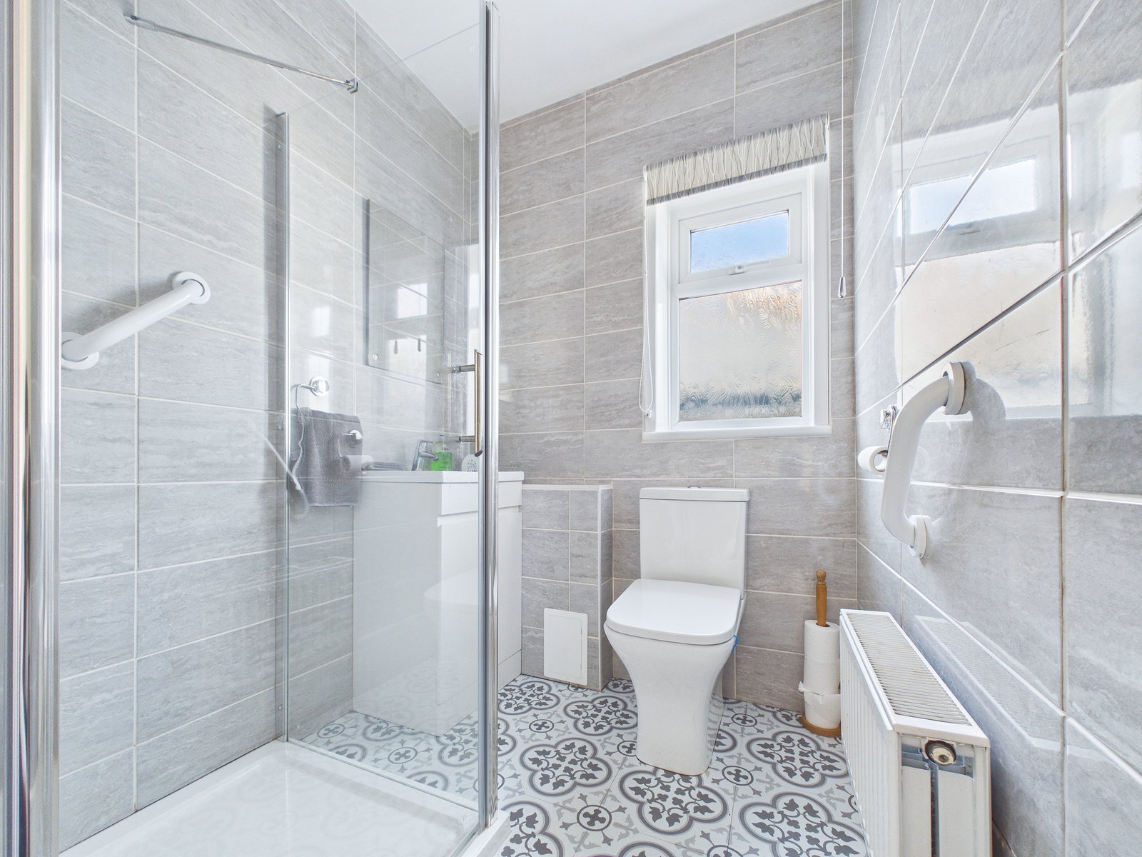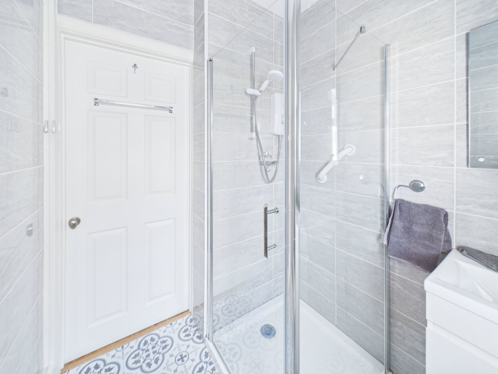 SHOWER ROOM Refitted luxury suite comprising good sized shower cubicle, vanity basin, low level WC, uPVC double glazing, central heating radiator and fully tiled.