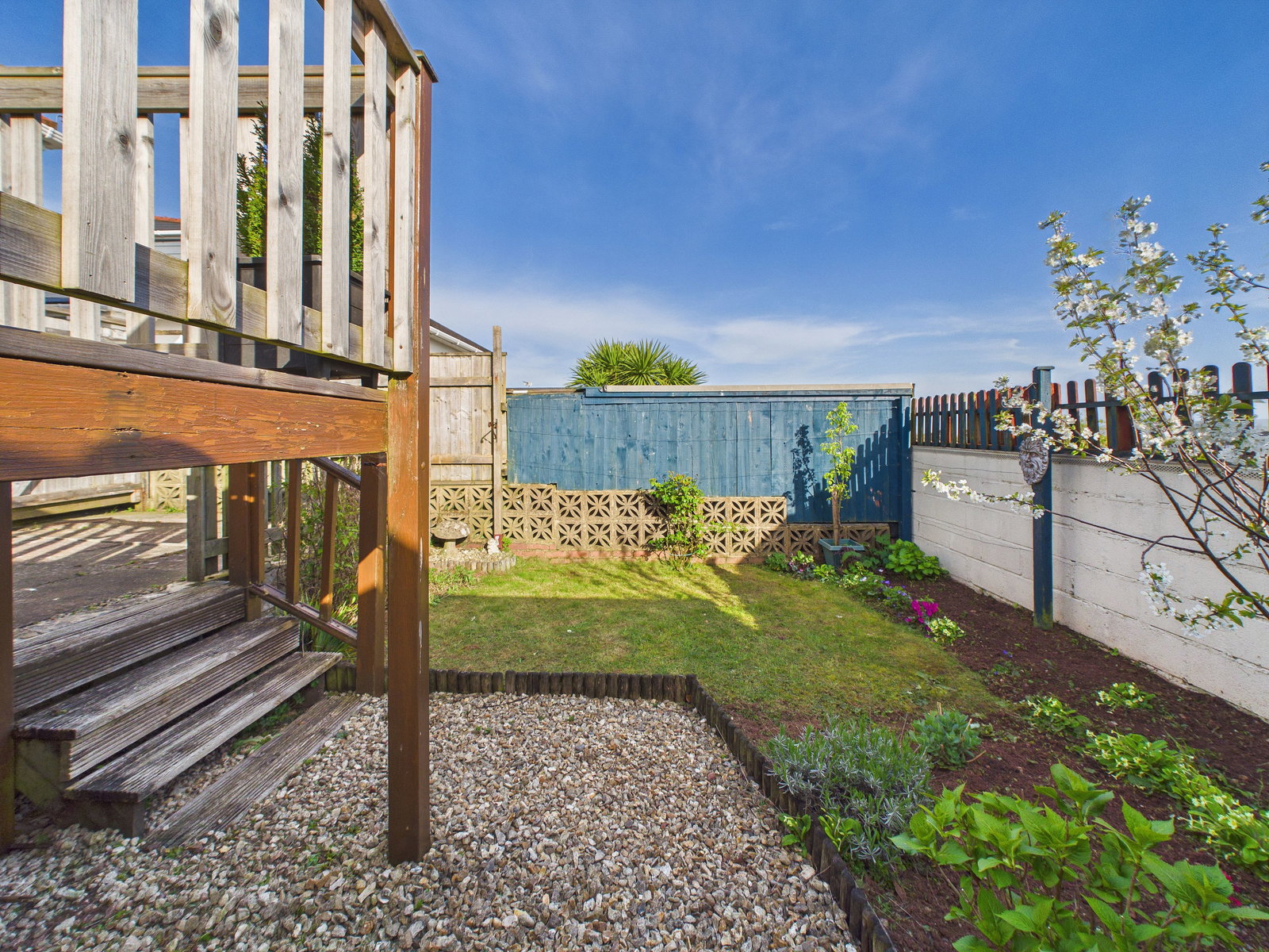 REAR GARDEN Patio area onto lawned garden nicely enclosed. Garden shed.