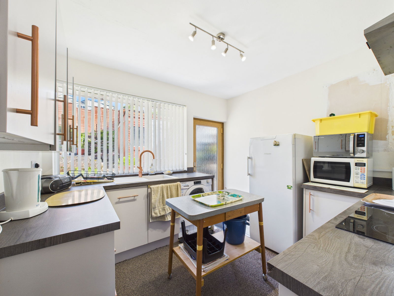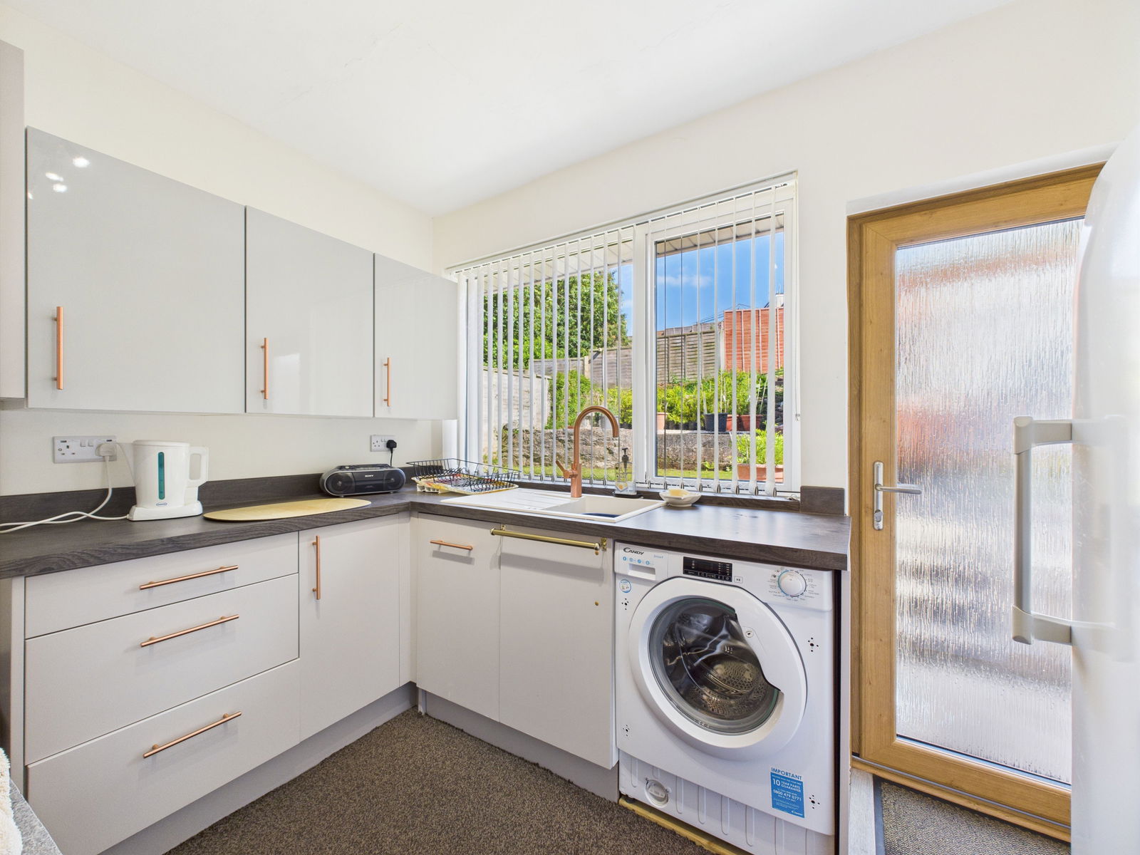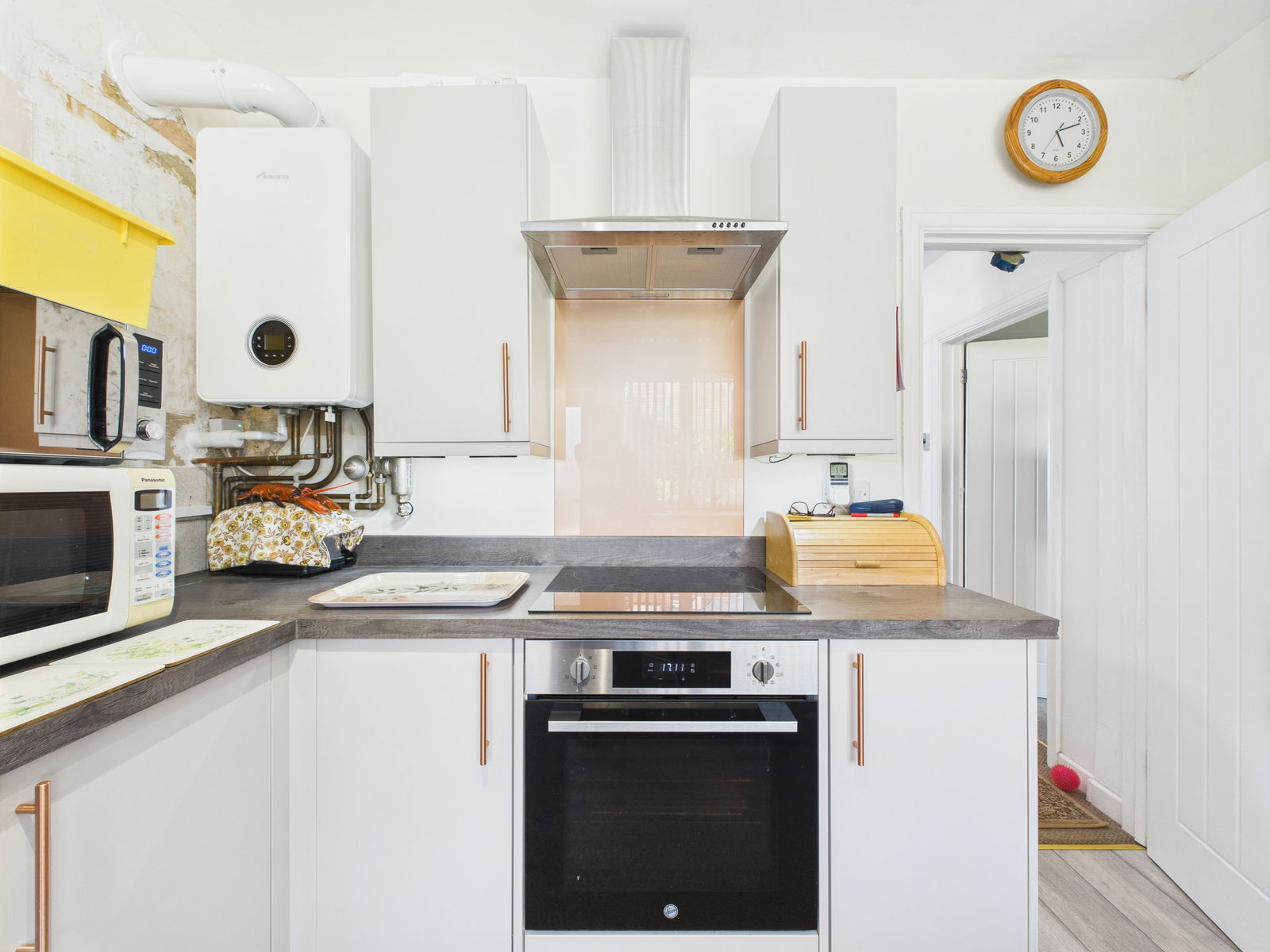 KITCHEN The modern fitted kitchen is both stylish and functional, featuring a range of wall mounted and base units with roll edged worktops. Included are a composite 1 bowl sink and drainer, integrated eye-level electric oven and grill, a four ring induction hob with extractor fan and a Candy washing machine. There’s also space for a fridge freezer, a recently installed Worcester combination boiler and access to the rear garden via a uPVC double glazed door and window.
