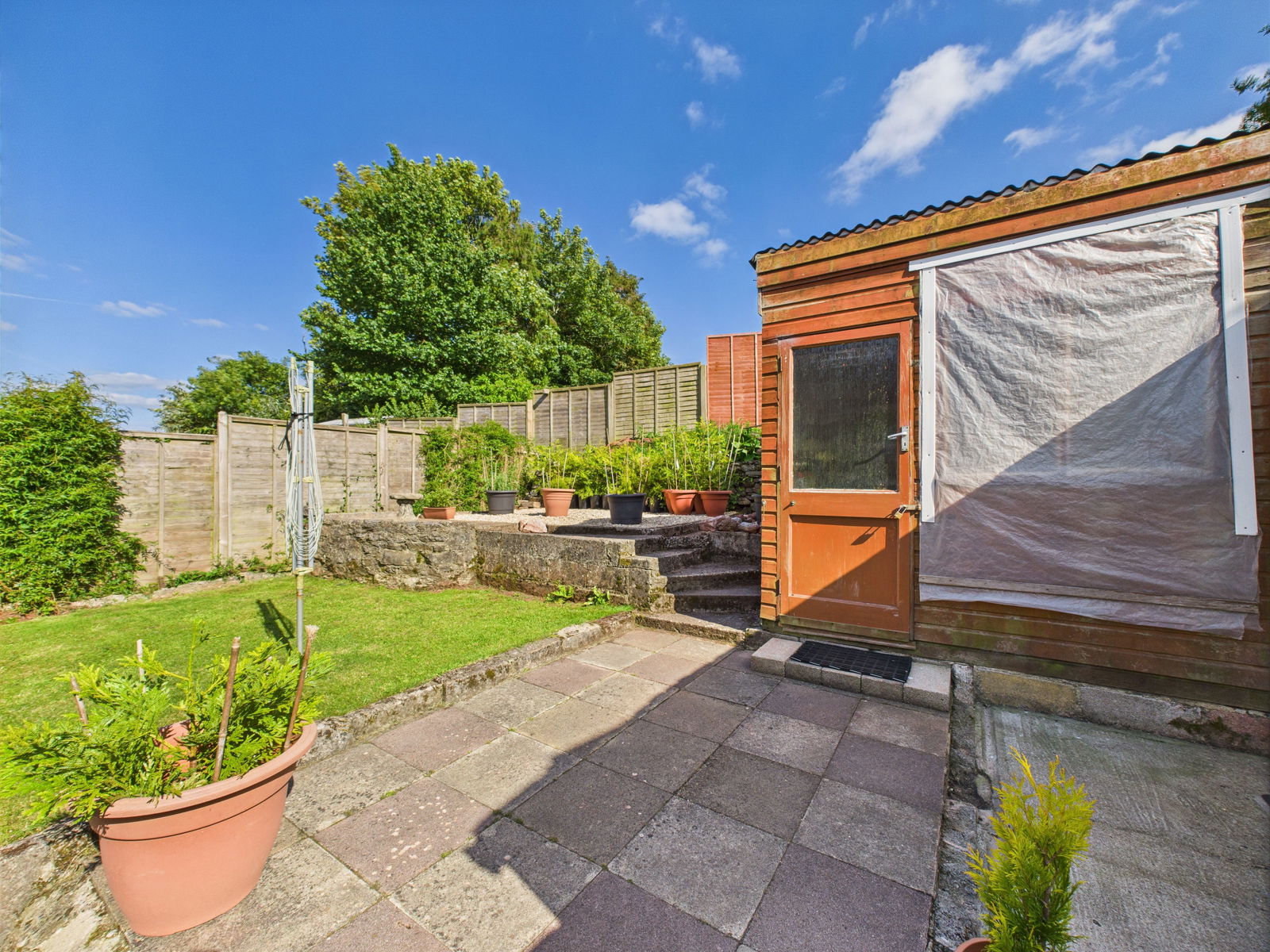 OUTSIDE The delightful south east facing rear garden is fully enclosed and designed for low maintenance, offering a generous paved patio area ideal for alfresco dining and entertaining. The remainder is laid to lawn and decorative pebbles. Additional features include a timber storage shed with power, garage access, and a side gate entrance.