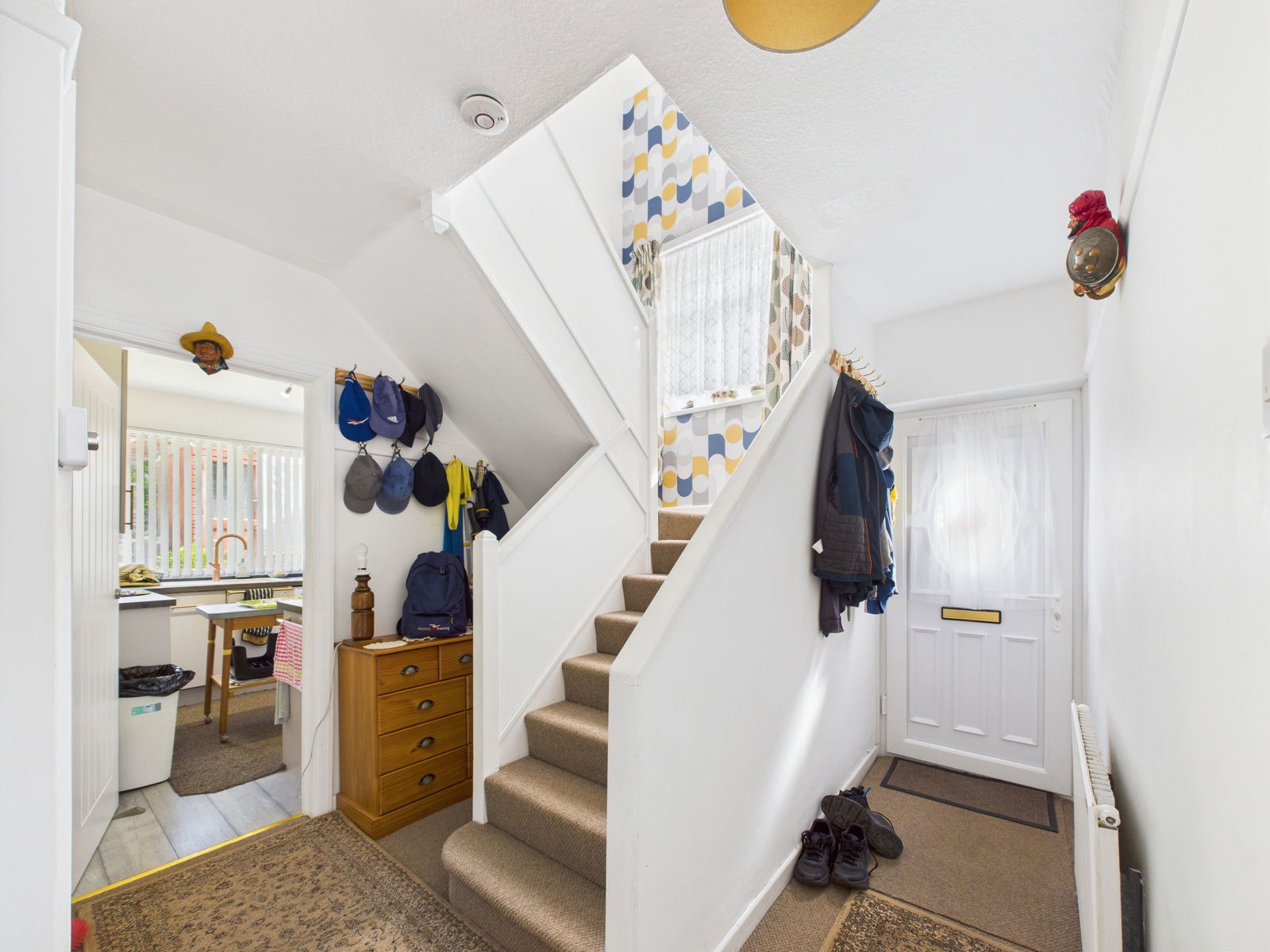 ENTRANCE HALLWAY Step into a welcoming and generously proportioned entrance hall through a uPVC double glazed front door. This spacious hallway features access to all principal ground floor rooms, a staircase rising to the first floor, an under stairs storage cupboard, overhead lighting and a gas central heating radiator.