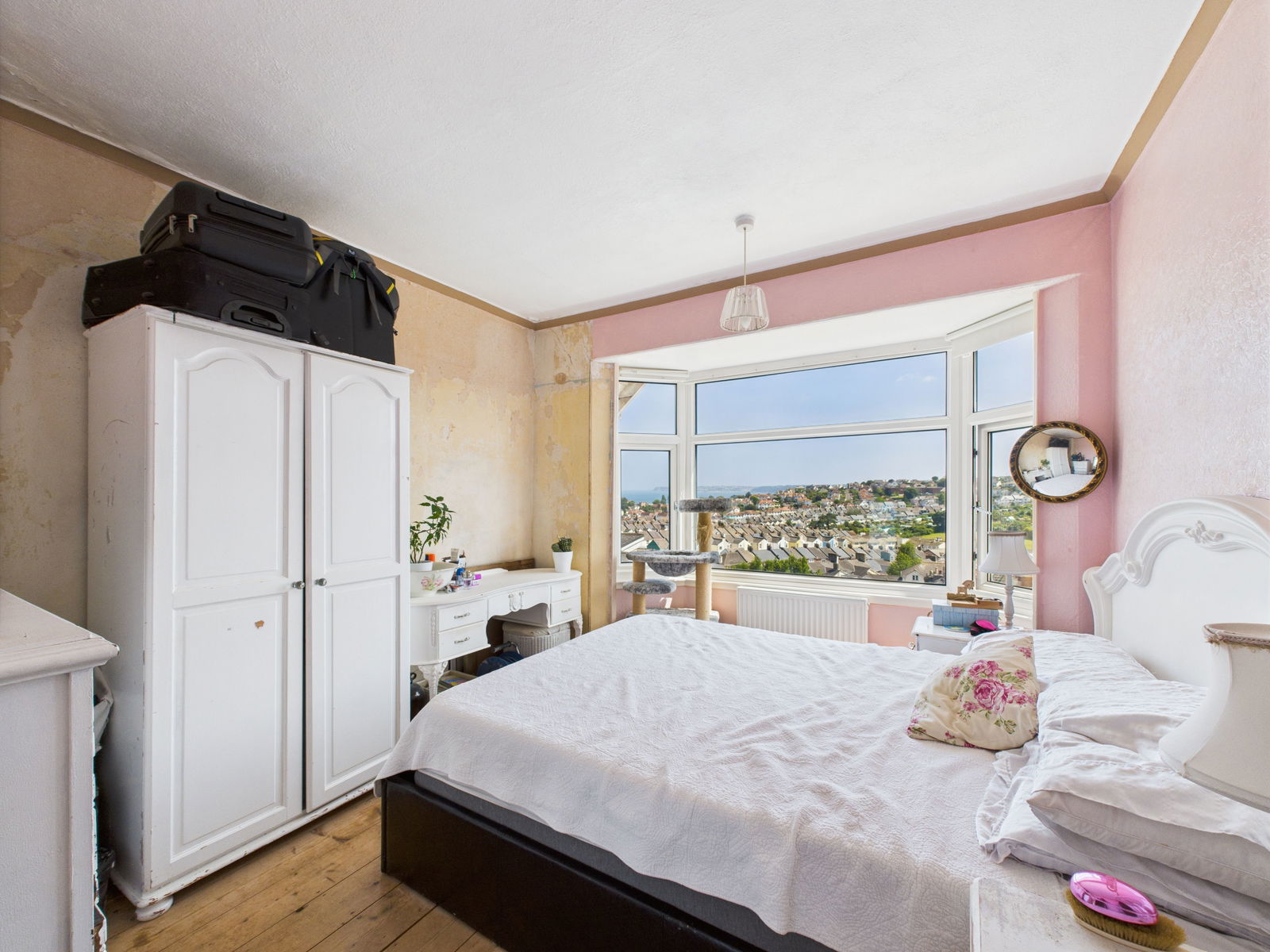 A generous and light filled master bedroom boasting exceptional sea views across the bay. This space includes a uPVC double glazed bay window, ample room for furniture and a gas central heated radiator.