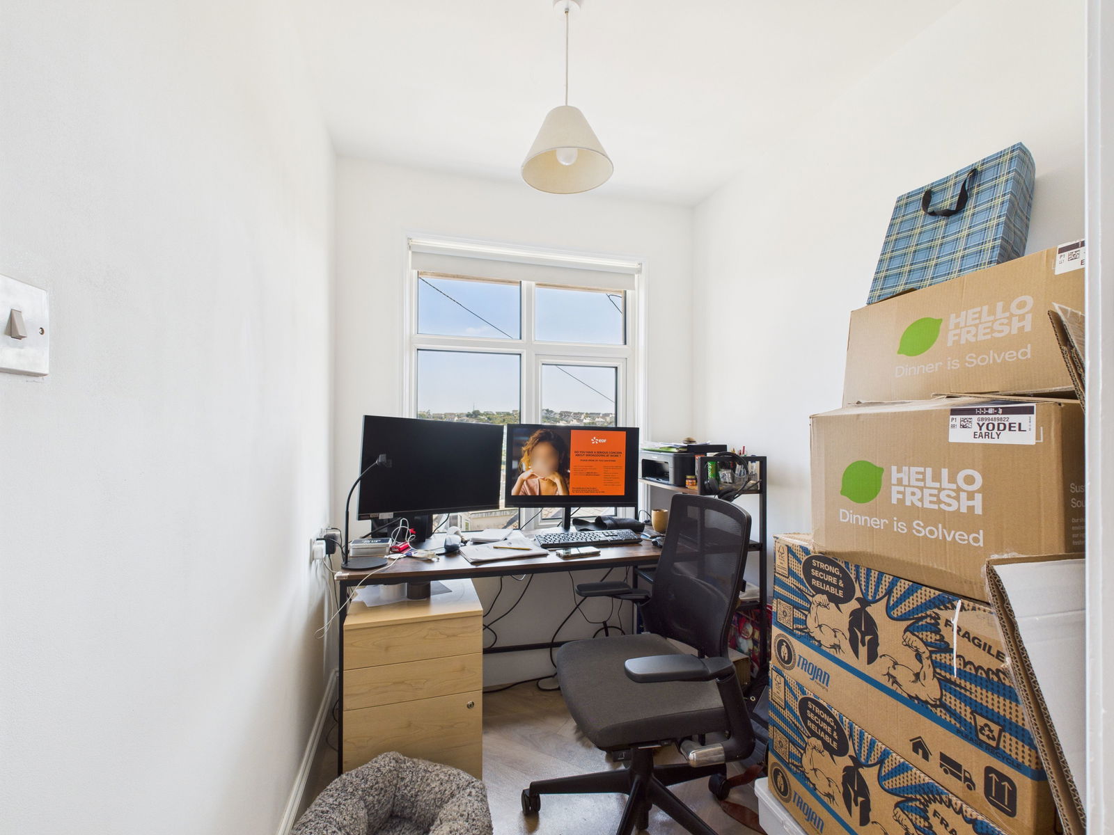 A versatile single bedroom ideal as a child’s room, home office, or study, featuring a uPVC double glazed window capturing beautiful sea views.