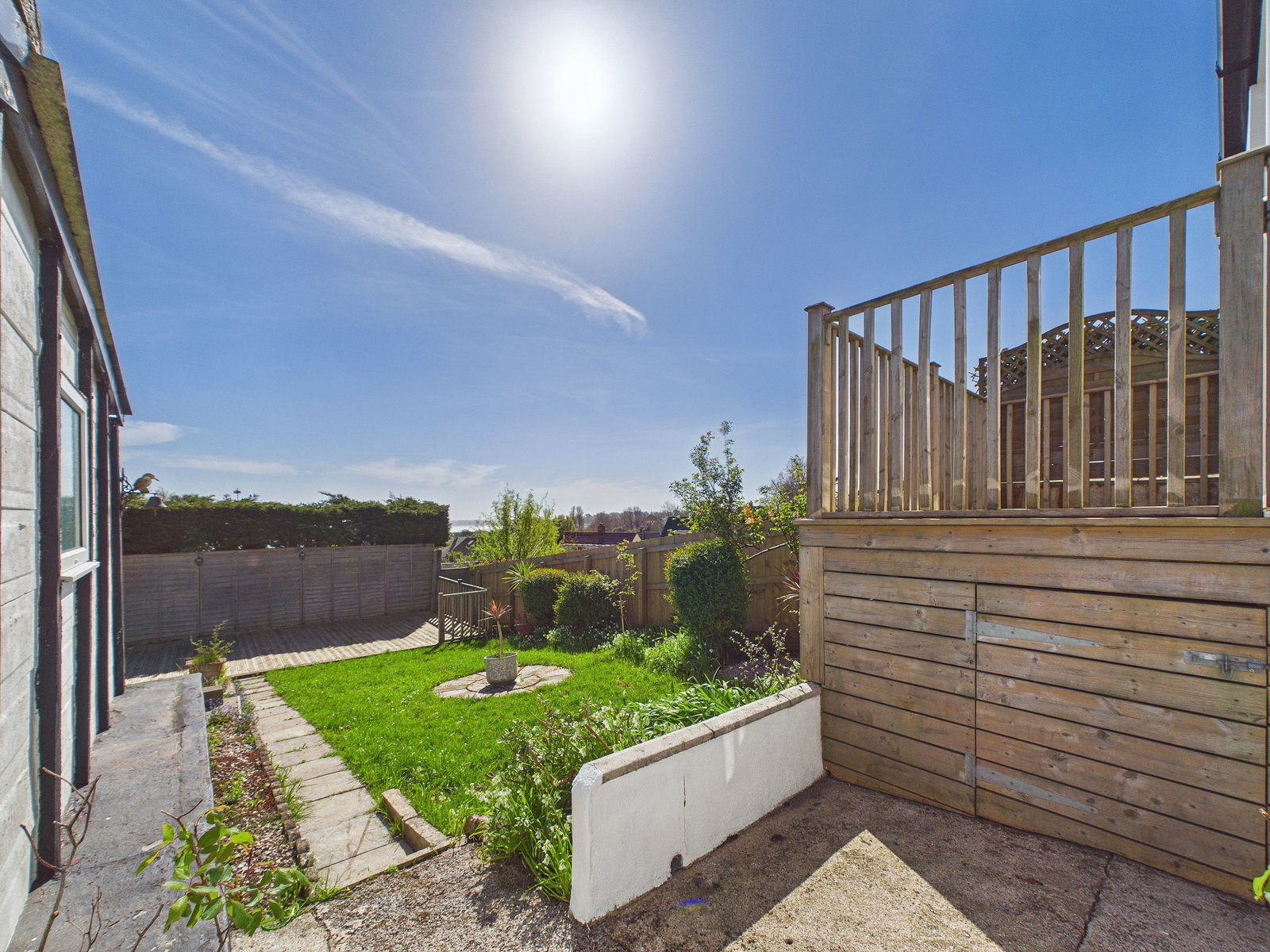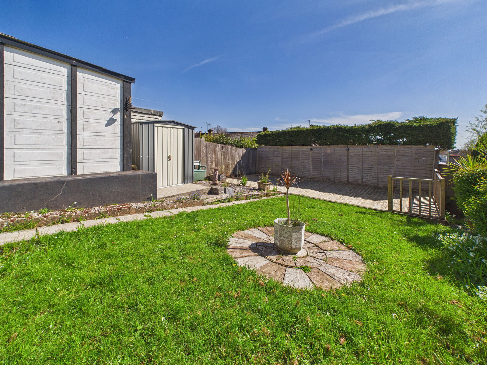 OUTSIDE The property boasts a beautifully maintained, sunny rear garden featuring a sun terrace accessed directly from the conservatory perfect for enjoying the stunning views. The garden includes a generous lawn bordered by a variety of mature shrubs and plants, along with a large decking area at the lower level ideal for alfresco dining and entertaining. Additional benefits include a garden shed and a garage with twin metal barn style doors and power supply.