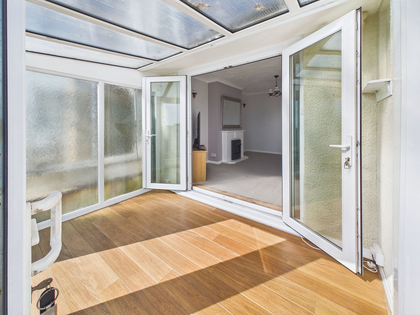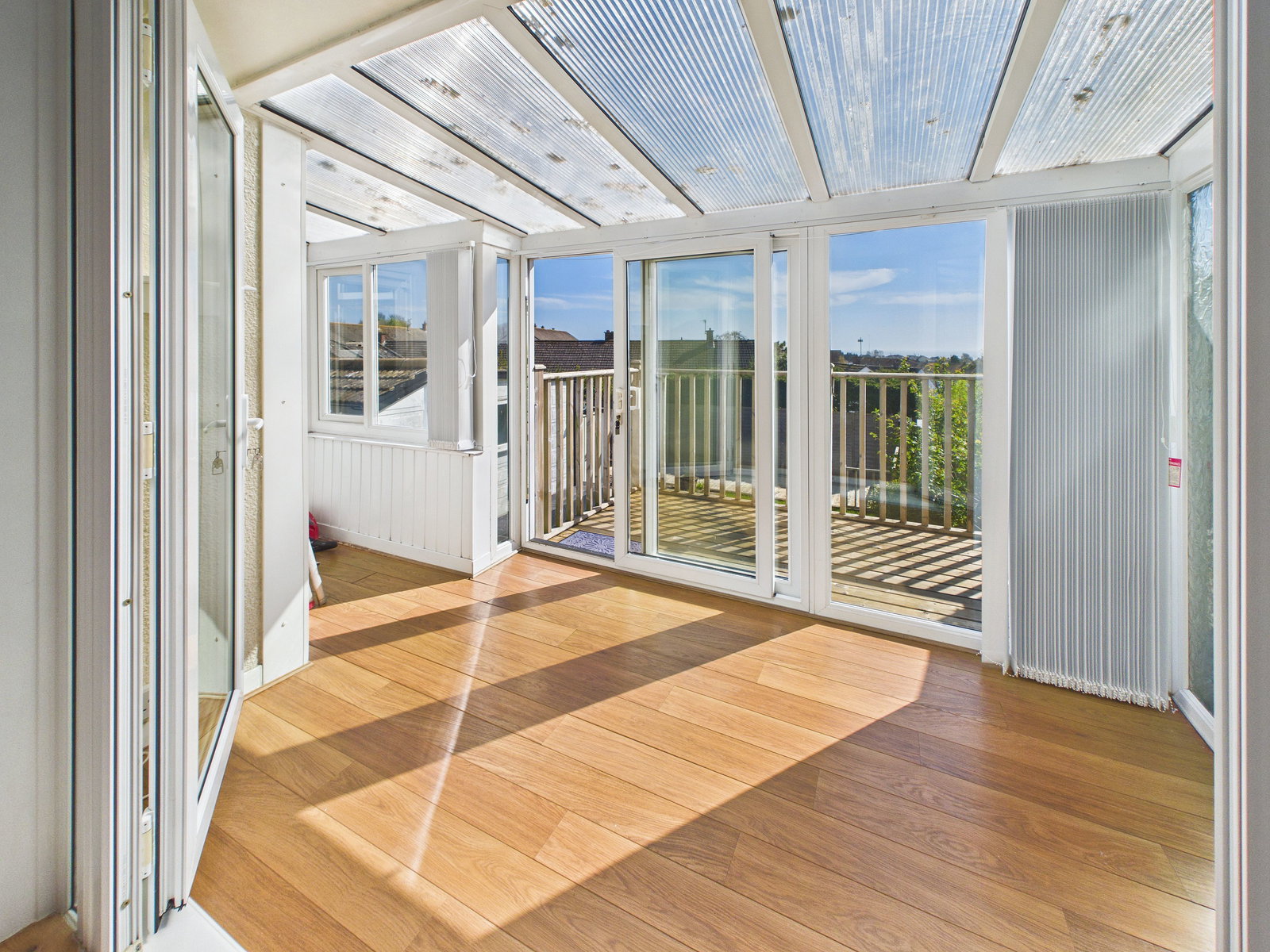 CONSERVATORY A light filled conservatory overlooking the beautifully maintained rear garden and enjoying superb sea views. This versatile space provides an ideal additional sitting area, with uPVC double glazed sliding doors leading onto the sun terrace and a further door opening to the garden.