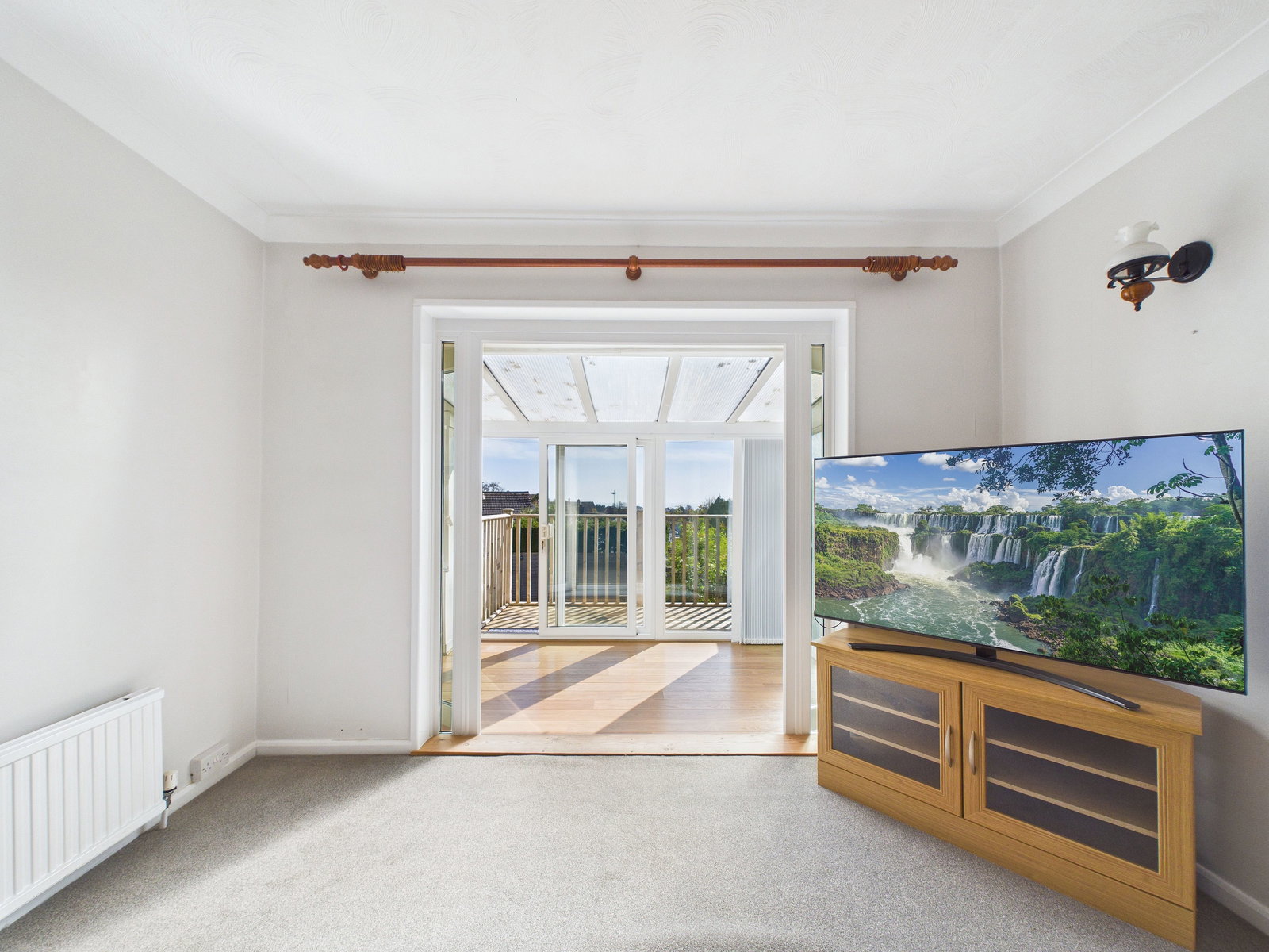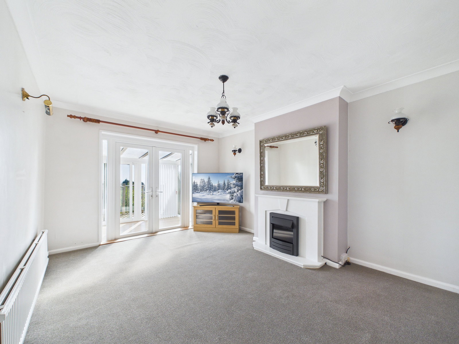 LIVING ROOM A spacious and comfortable living area enjoying breathtaking sea views towards Berry Head, Brixham. Features include a stylish electric fireplace, TV point, and uPVC double glazed French doors opening into the conservatory. Gas central heating radiator.