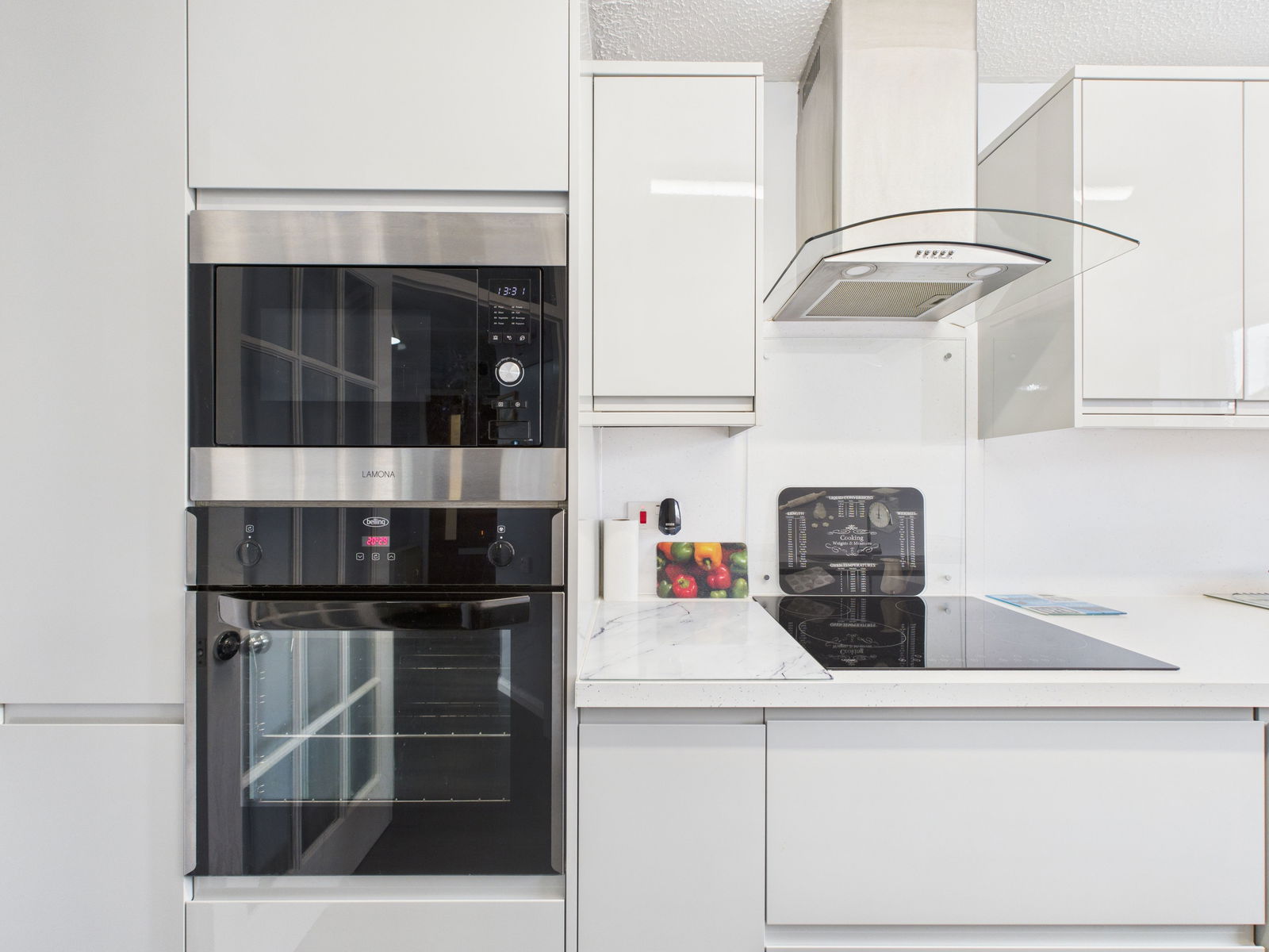 KITCHEN A beautifully presented, recently fitted kitchen designed with both style and practicality in mind. It offers a comprehensive range of wall, base and drawer units with sleek square edged work surfaces. The space is fully equipped with a 1 1/2 bowl composite sink and drainer, integrated eye level electric oven with grill, built in microwave, four ring induction hob with extractor above and integrated fridge and freezer. There is also space and plumbing for a washing machine and a uPVC double glazed window.