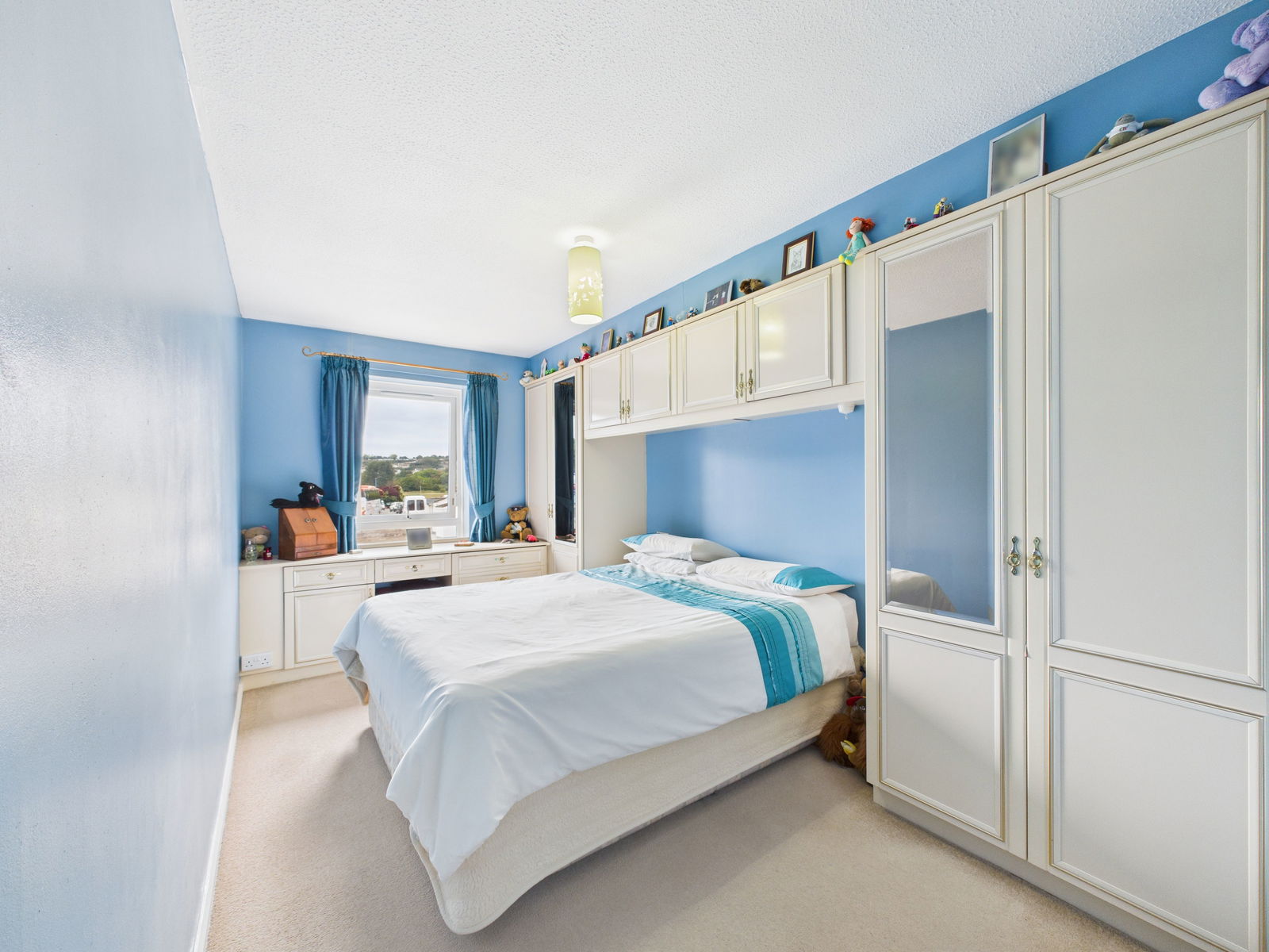 BEDROOM ONE A spacious and inviting master bedroom overlooking Clennon Valley, fitted with an excellent range of built in wardrobes, drawers and overhead storage cupboards. A large uPVC double glazed window.