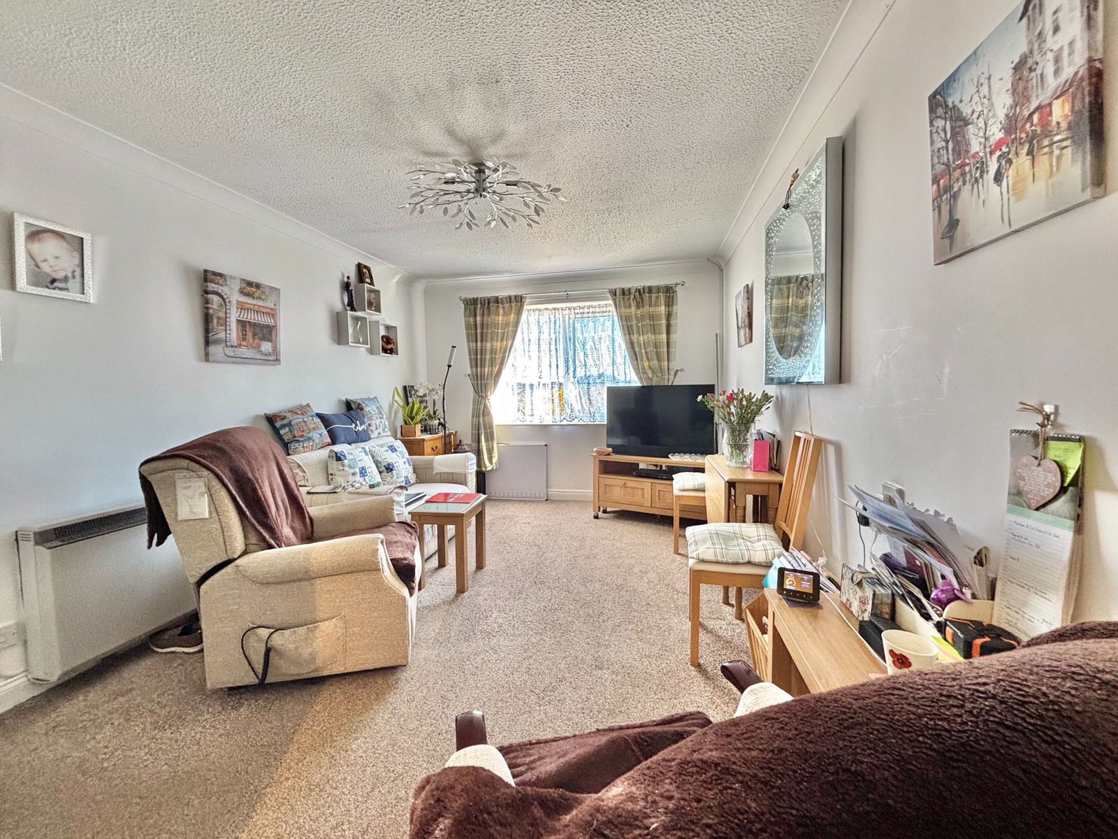ENTRANCE HALL A secure fire safety front door opens into a welcoming entrance hall. This bright and inviting space features overhead lighting, a wall mounted electric heater, a generous fitted storage cupboard and doors leading to all principal rooms.