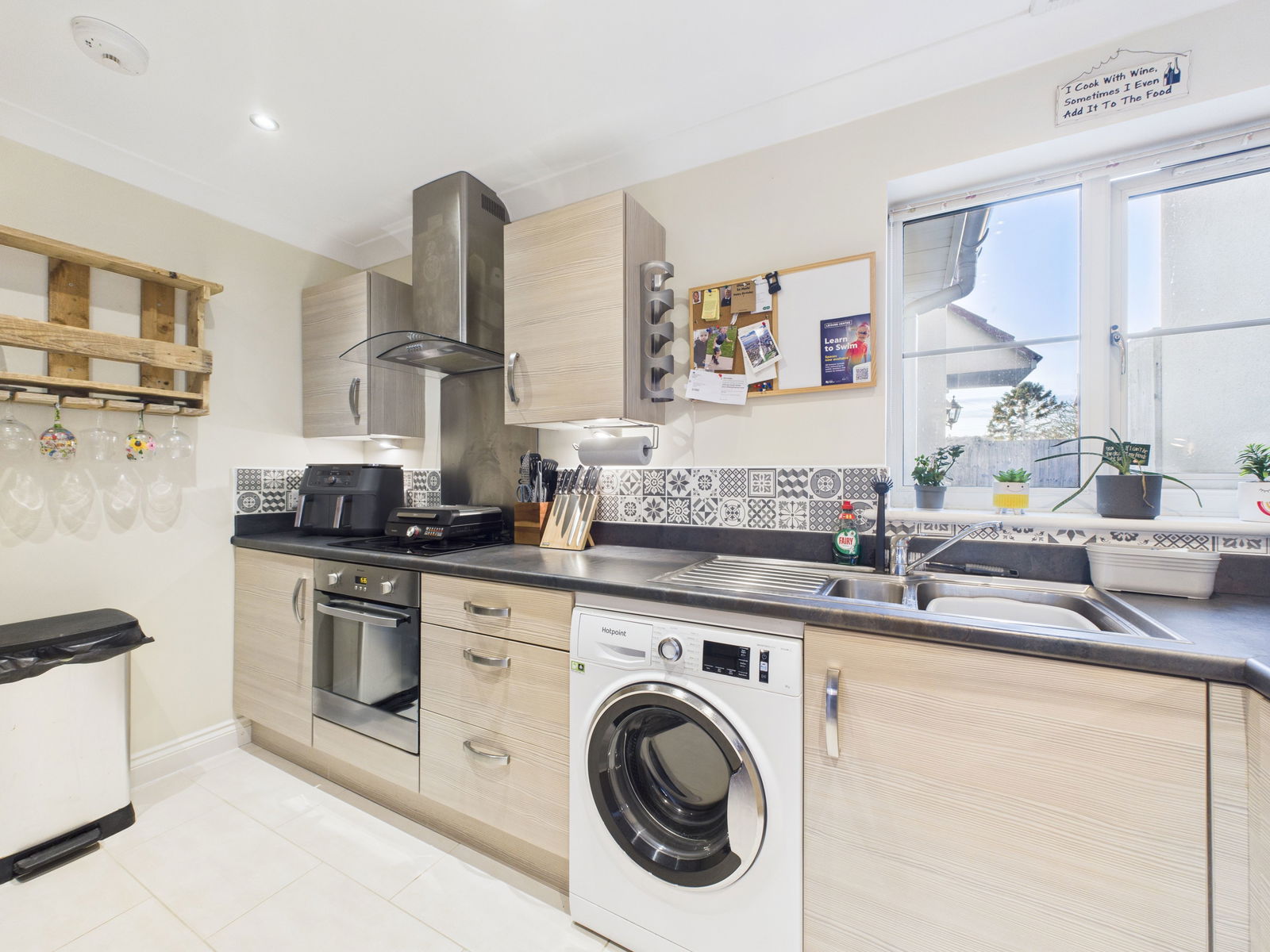 KITCHEN A stylish, modern kitchen fitted with an excellent range of wall, base and drawer units topped with roll edged work surfaces. Included are a 1 1/2 bowl stainless steel sink and drainer, an integrated electric oven with grill, a four ring induction hob with extractor above, plus an integrated dishwasher and fridge freezer. Additional features include space and plumbing for a washing machine, tiled back splash and a uPVC double glazed window.