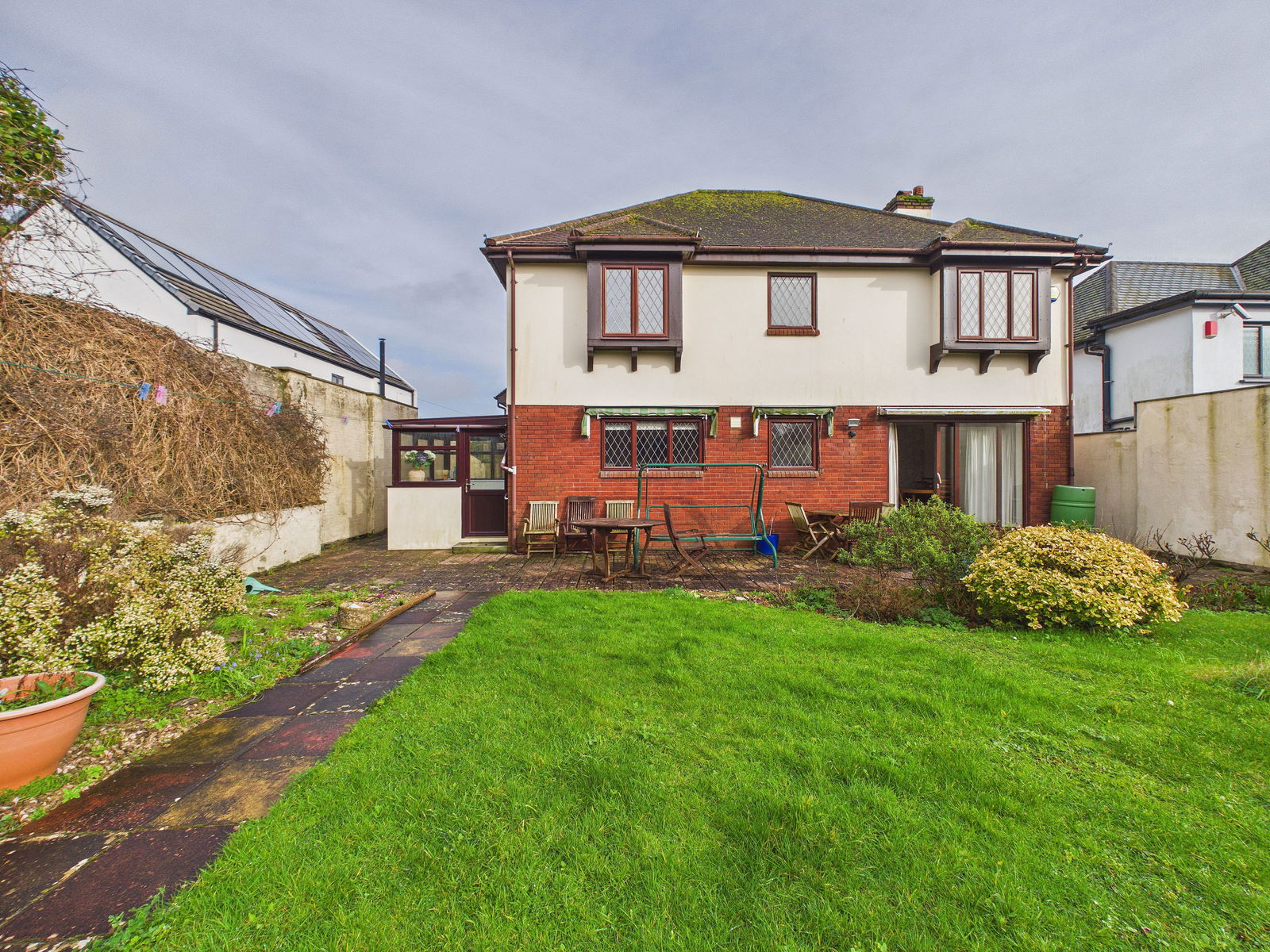 REAR GARDEN A sun filled west facing rear garden thoughtfully arranged to maximise sunlight throughout the day. A spacious patio area, accessed from the dining room and rear porch provides an ideal setting for outdoor dining and entertaining, while the remainder is predominantly laid to lawn with a variety of mature shrubs and planting.