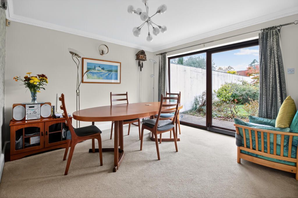 DINING ROOM A well proportioned dining room overlooking the sunny rear gardens, with space for an 8/10 seater dining table. uPVC double glazed sliding patio doors provide direct access to the garden, complemented by a gas central heating radiator.