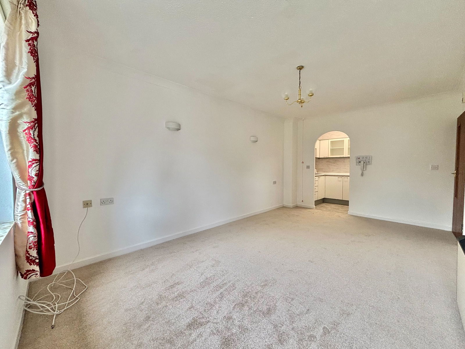 LOUNGE DINER An impressively bright and airy lounge/dining room with lovely views over the manicured front gardens. Ample space for furniture, television and internet connection points, emergency pull cord, and an electric night storage heater. Large uPVC double glazed windows flood the space with natural light.