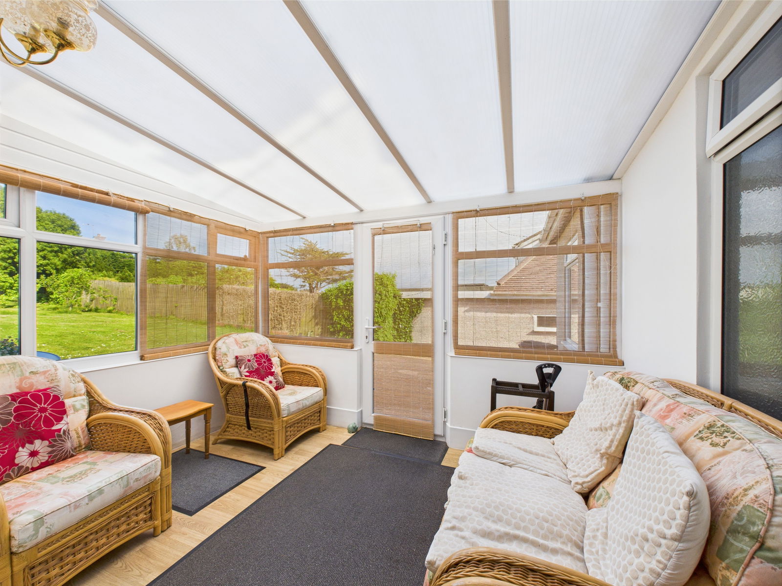 KITCHEN/DINER/SNUG A wonderfully large kitchen/diner/snug perfect for entertaining. The kitchen boasts a range of overhead, base and drawer units with roll edged work surfaces above. A 1 bowl stainless steel sink and drainer unit, a ‘royal’ Arga oven, and well as a further electric singe oven with grill integrated and a four ring induction hob with extractor hood above. Tile backsplash, space and plumbing for a washing machine and American fridge freezer. uPVC double glazed windows, a uPVC double glazed door leading out to the conservatory, space for a 6 seater dining table and a gas central heated radiator.