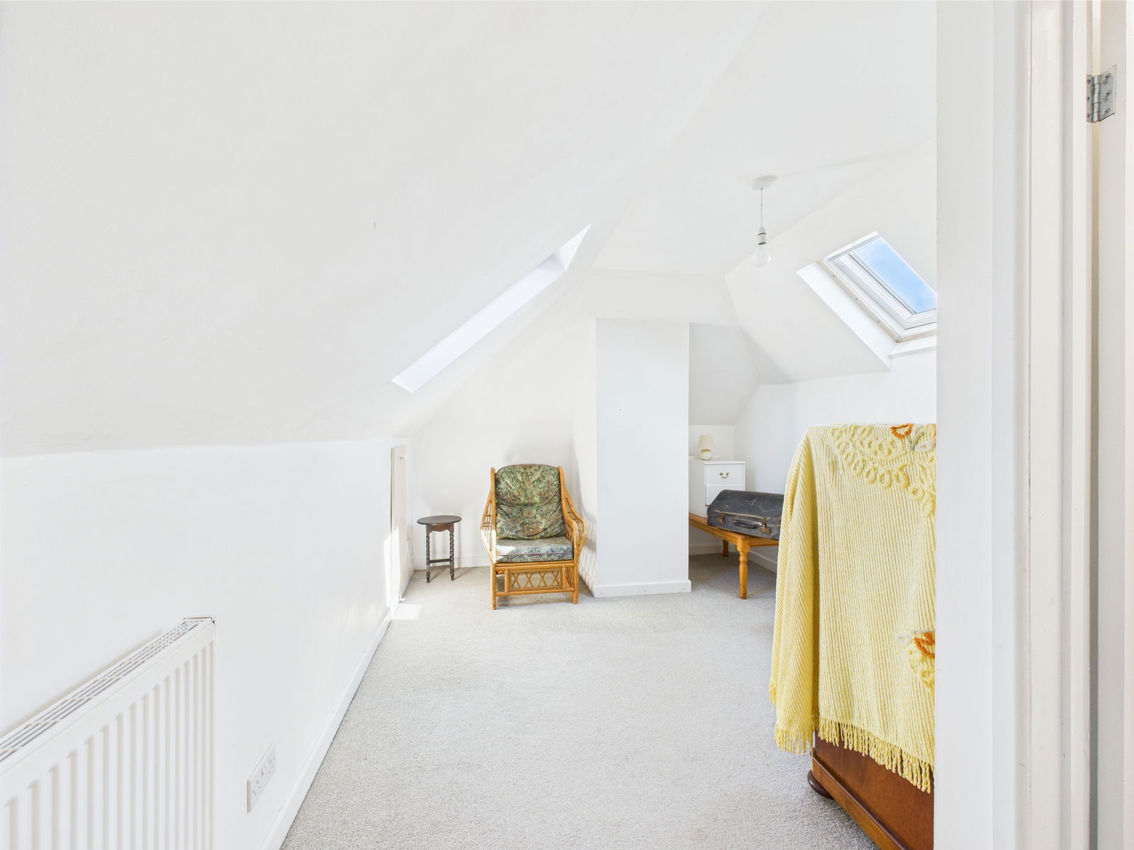 BEDROOM THREE A third generously sized double bedroom that could also make an ideal office/hobby room/study etc. Velux windows, eaves storage and a gas central heated radiator.