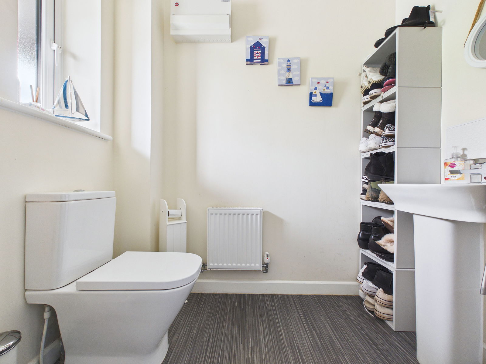 On the entrance level, a spacious and contemporary kitchen/diner provides the perfect setting for modern family living and entertaining. The room is fitted with a range of wall, base and drawer units, with ample space for appliances and a generous dining area. French doors open onto a Juliet balcony, while uPVC double glazed windows offer pleasant views over the rear garden. This level also provides integral access to a larger than average garage, along with a convenient cloakroom fitted with a low level WC and wash hand basin.