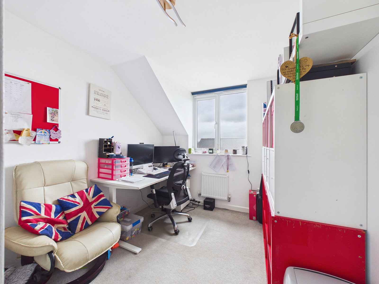 To the front of the property, there is off road parking and an integral larger than average single garage. Evie car charger at the front of the property.