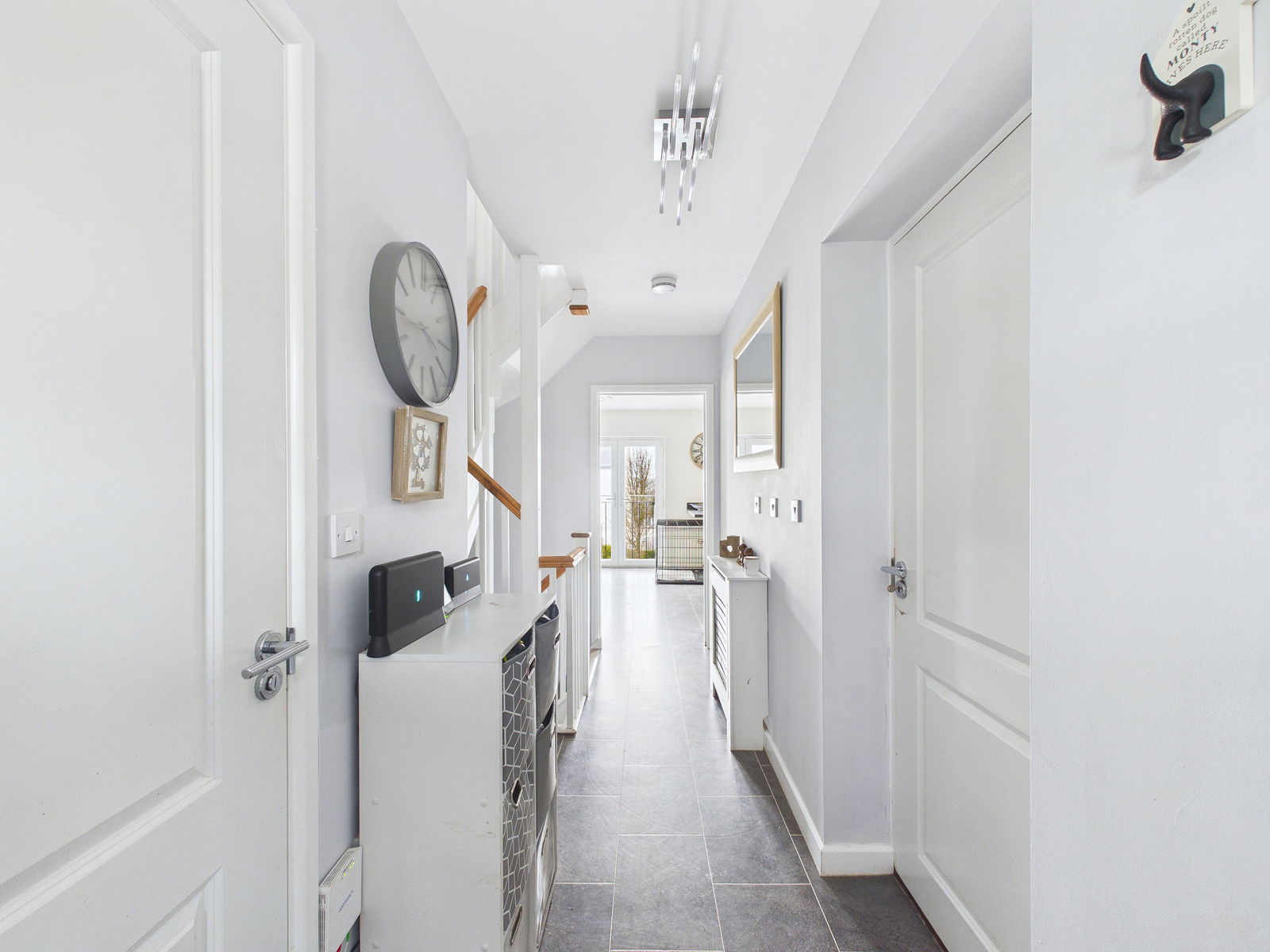 A composite double glazed front door opens into a welcoming entrance hallway, providing access to the principal reception areas, with stairs rising to the first floor and descending to the lower ground floor accommodation.