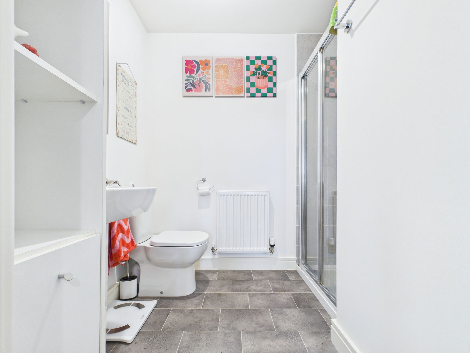 EN-SUITE SHOWER ROOM Finished to a modern standard, the en-suite comprises a WC, pedestal wash basin and a spacious walk in double shower enclosure. Additional features include part tiling, extractor fan and gas central heating radiator.