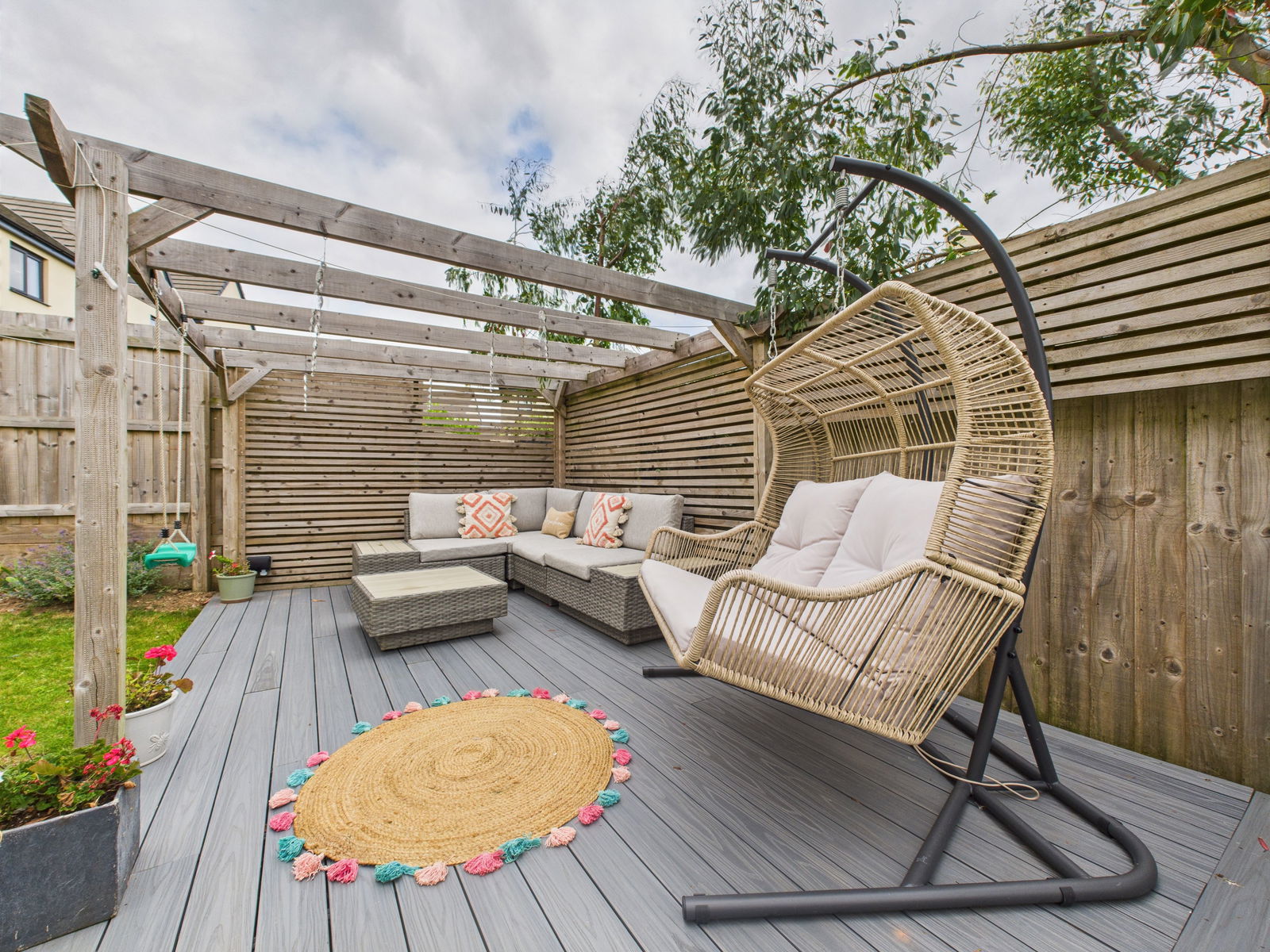 A beautifully landscaped enclosed rear garden with a sizeable lawned area and a large decking area. Side access gate to the front of the property. A block paved driveway allowing off road parking leading up to the garage and an easy to maintain front garden.
