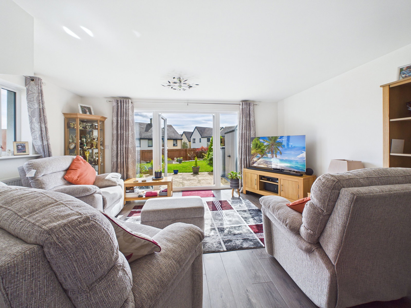 Large UPVC double glazed French doors lead directly onto the rear garden, enhancing the bright feel of the space and creating an ideal indoor-outdoor flow.