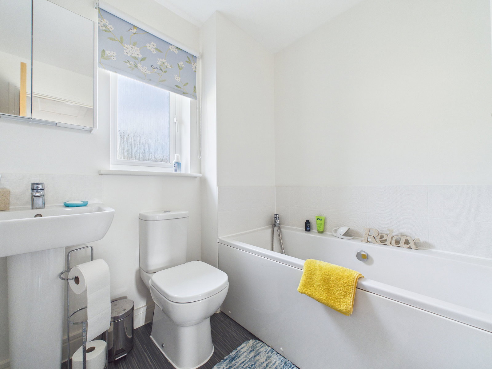 BATHROOM Fitted with a bath, WC and vanity wash basin. Additional features include a radiator, extraction unit and UPVC double glazed frosted window unit.
