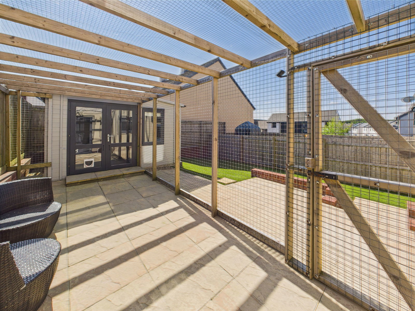 REAR GARDEN Enjoy the outdoors in this south-west facing rear garden, basking in sunlight throughout the day. Designed with a large patio area ideal for alfresco dining and entertaining, and low maintenance artificial lawn. The garden also provides access to a substantial timber built summer house complete with lighting and electrical sockets, and rear entry to the garage.